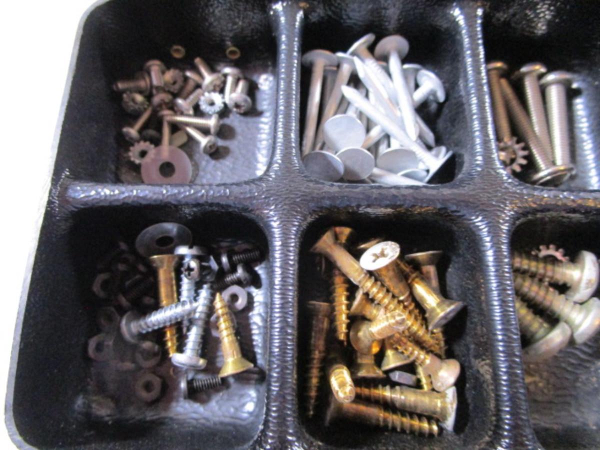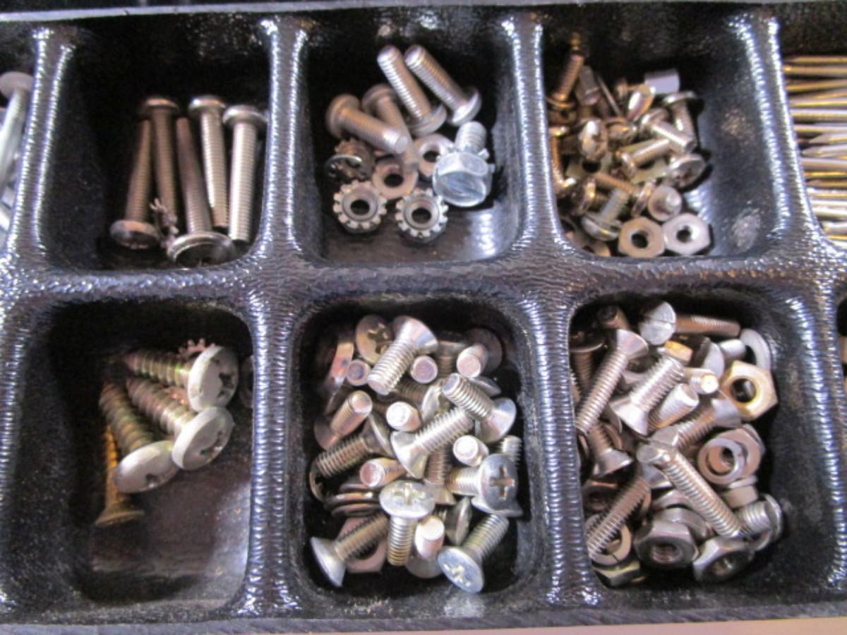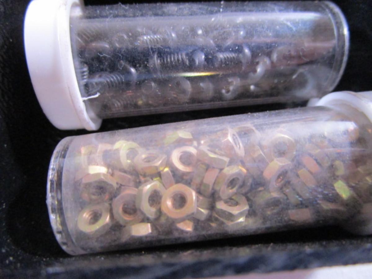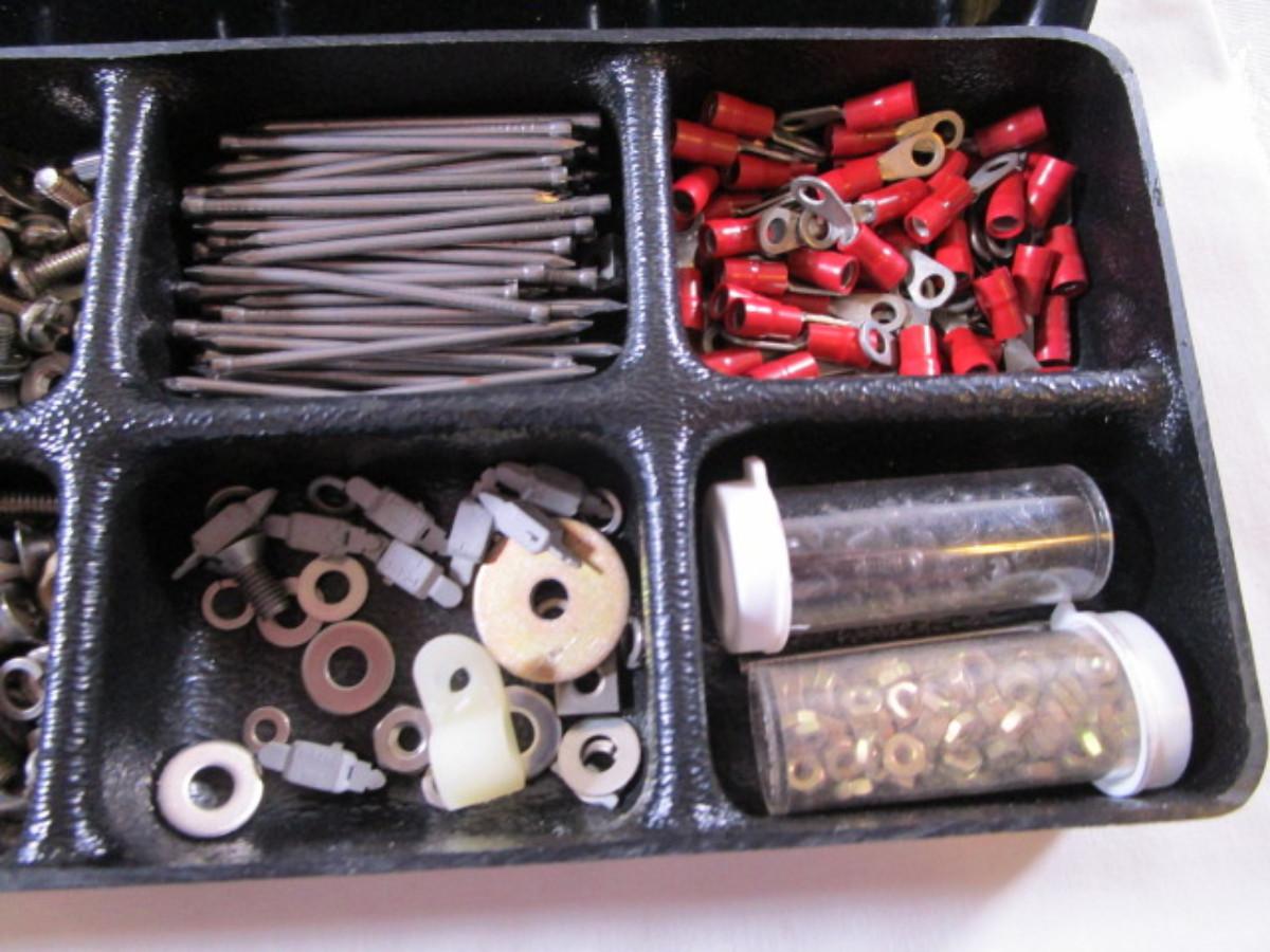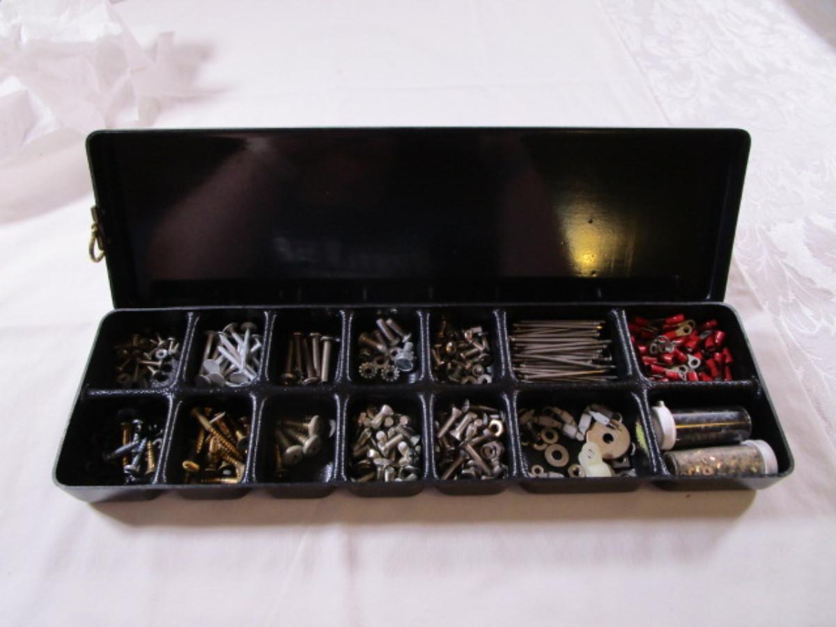 nuts, bolts, screws, nails, case is 14" long x 4-1/8" wide x 1" tall