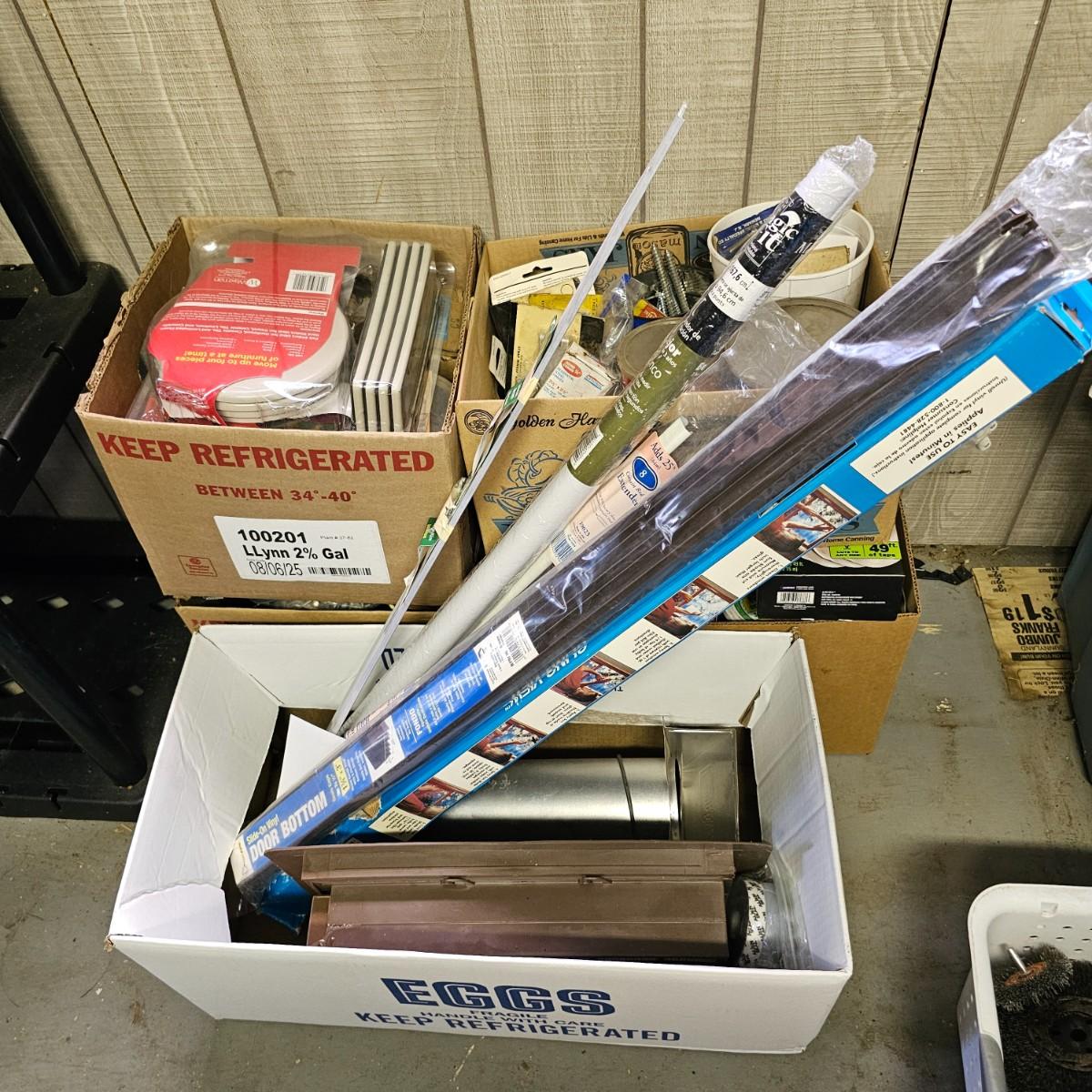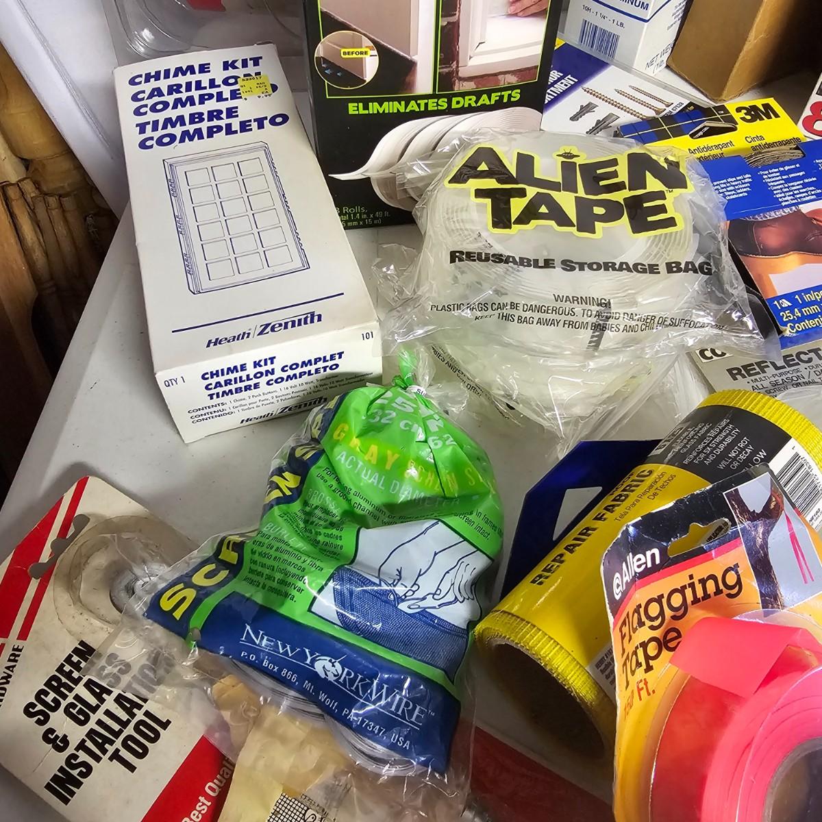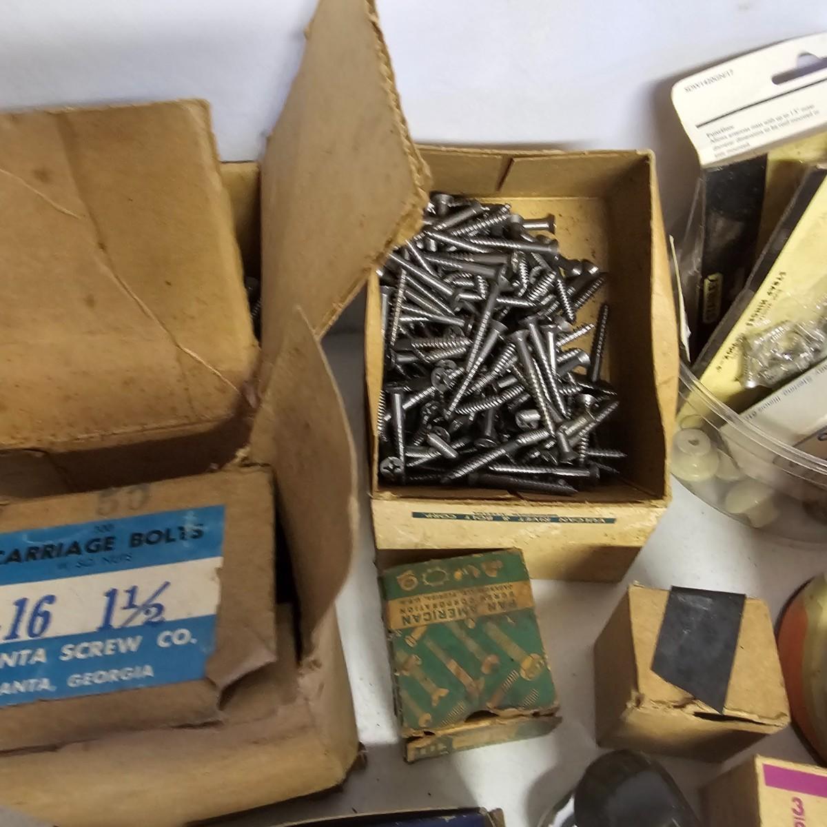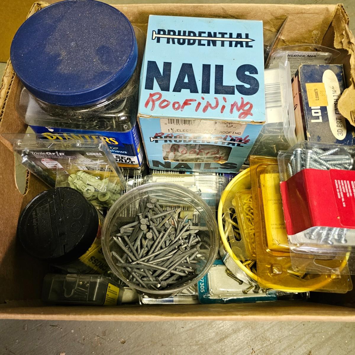 We have it again, that multipiece everything you need hardware lot. Screws, bolts, nails, tape, sliders, hinges and lots lots more. Too many items to show them all individually, but there are five boxes of steel, aluminum and many other goodies. See photos for details.
