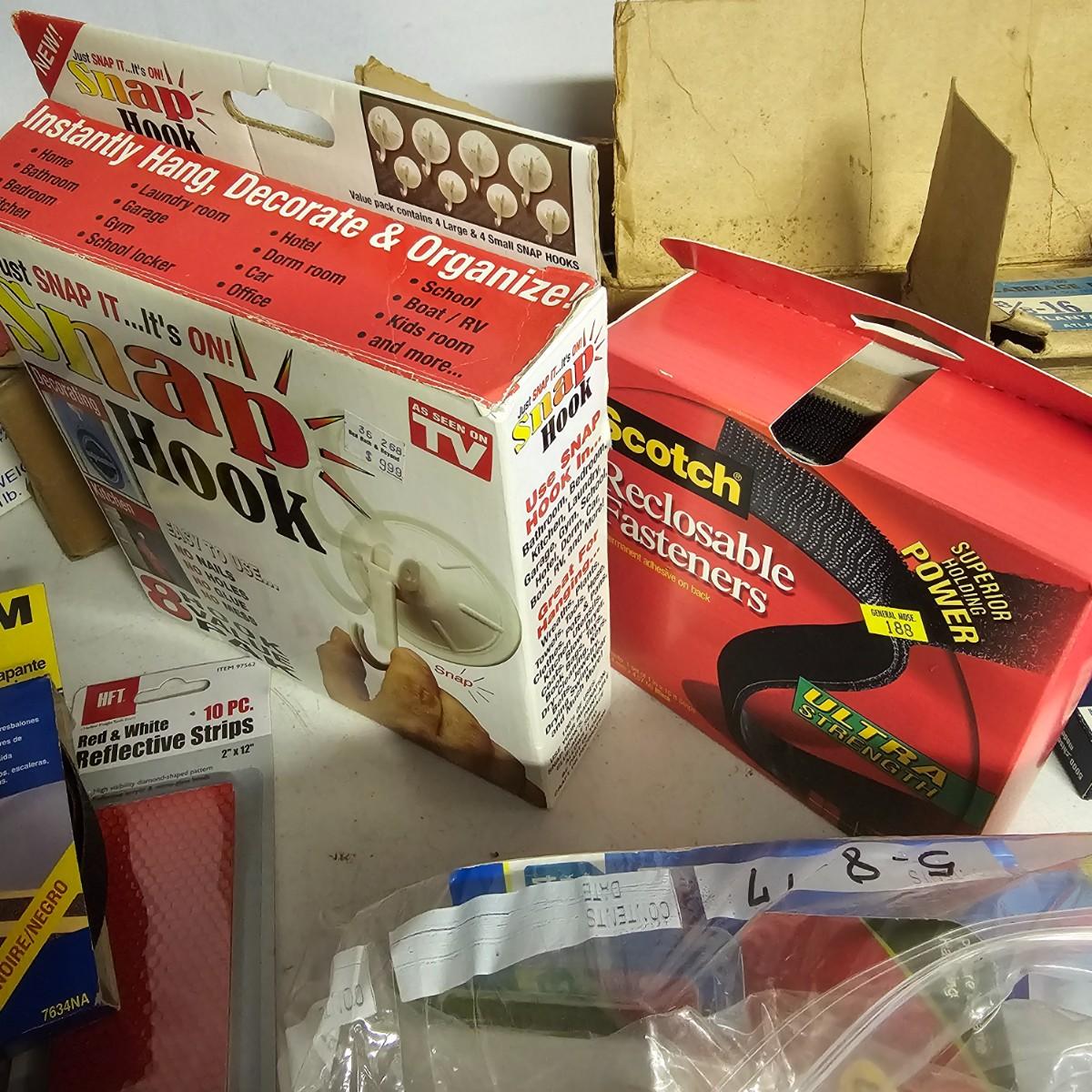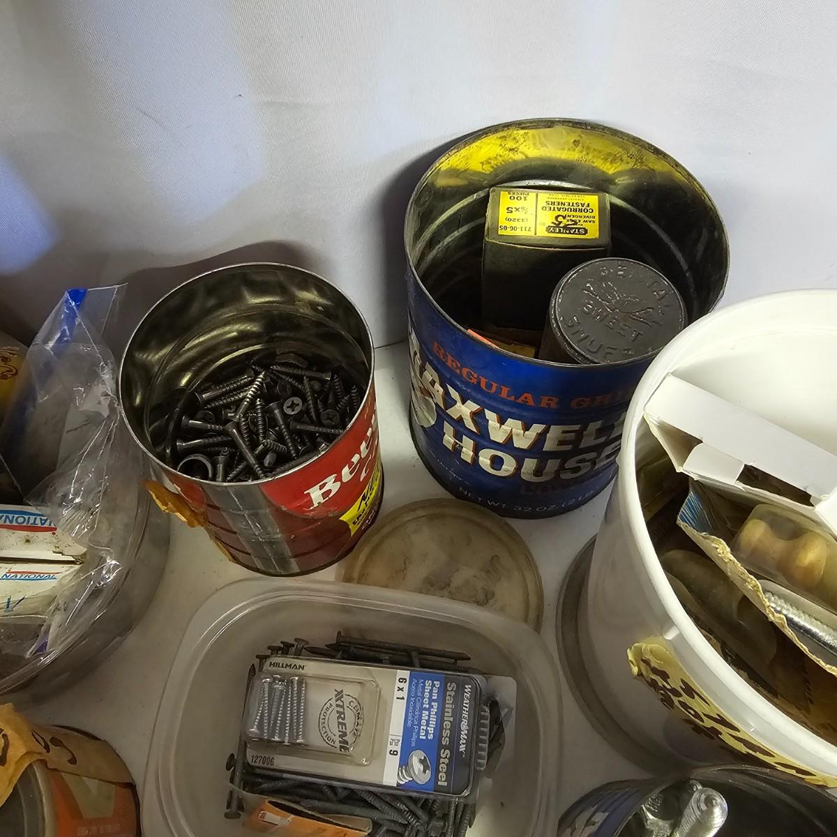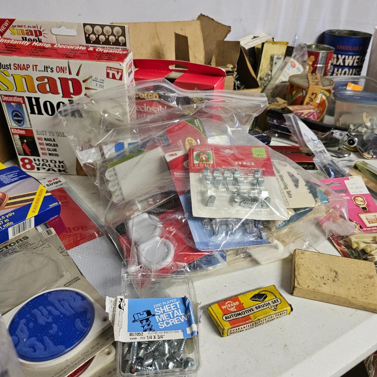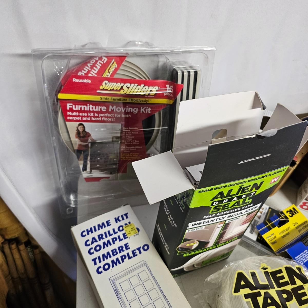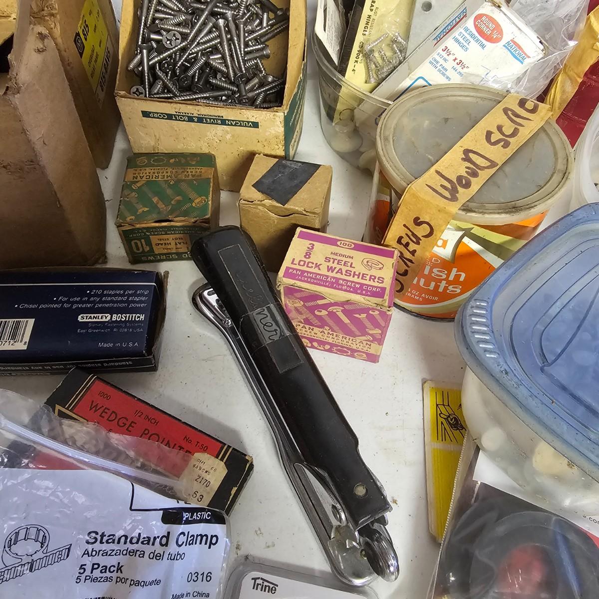 We have it again, that multipiece everything you need hardware lot. Screws, bolts, nails, tape, sliders, hinges and lots lots more. Too many items to show them all individually, but there are five boxes of steel, aluminum and many other goodies. See photos for details.