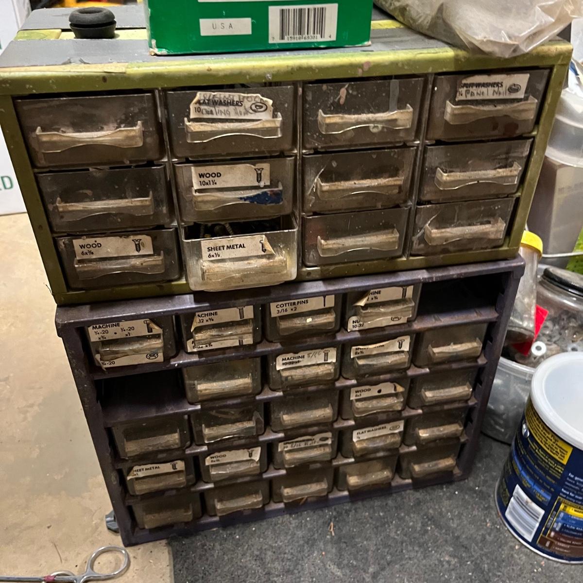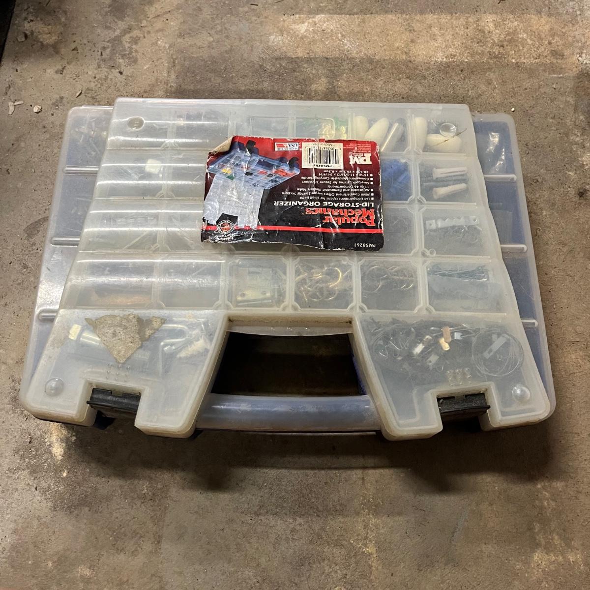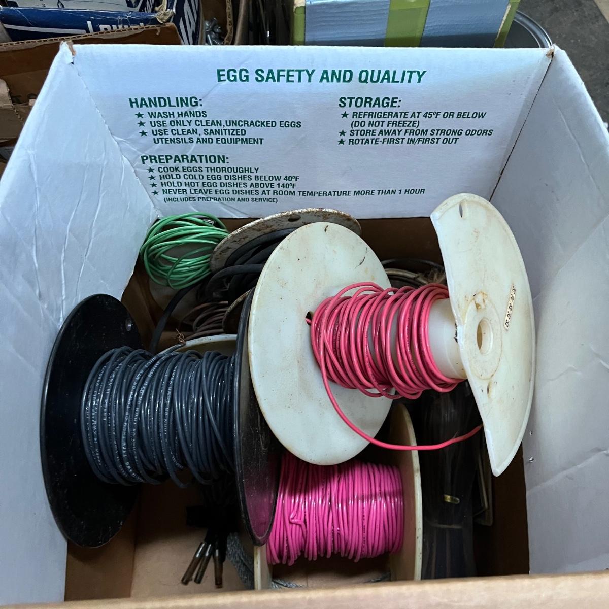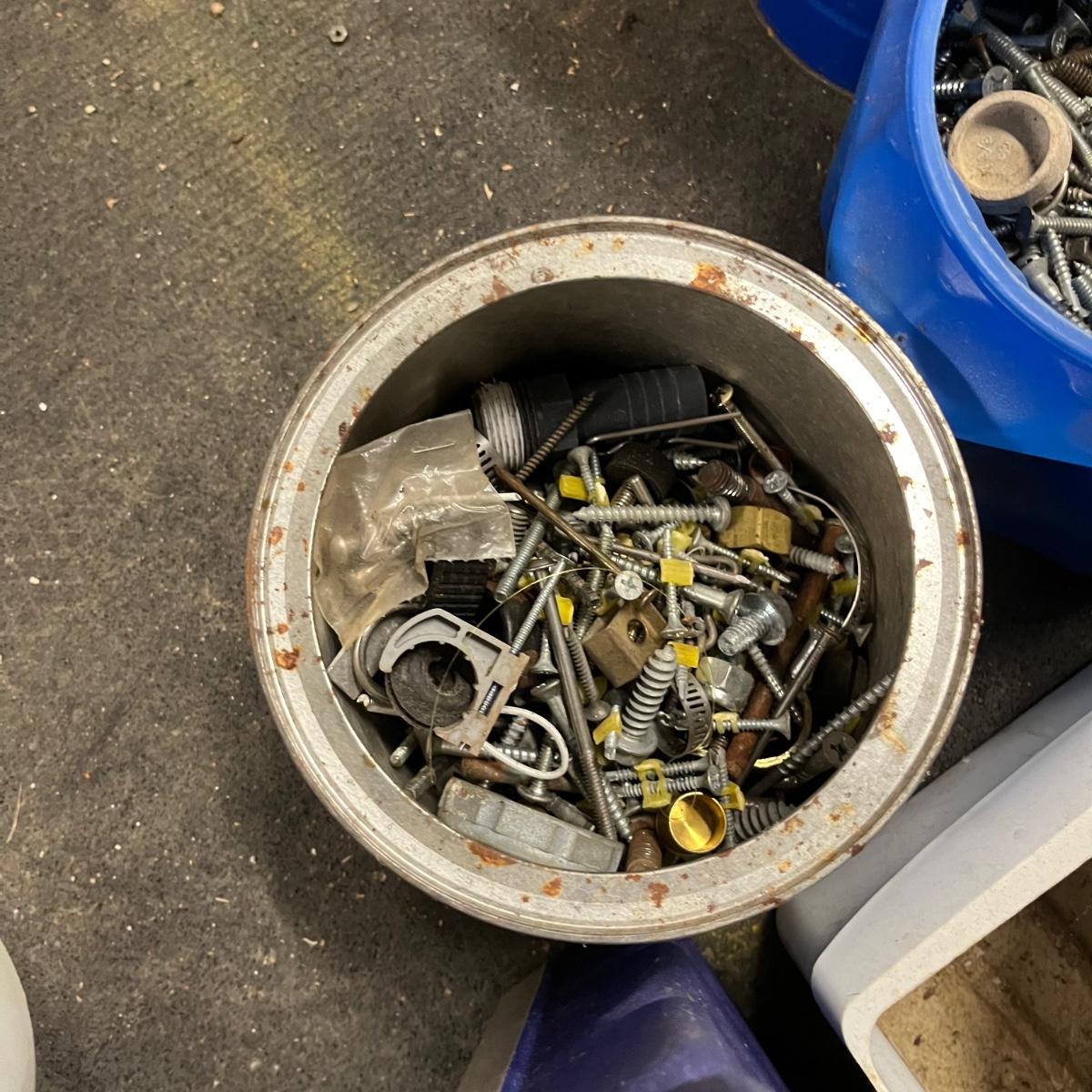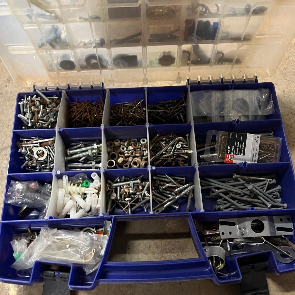 Lot includes a large selection of screws, bolts, nails, wire, box with assortment of hardware and more.