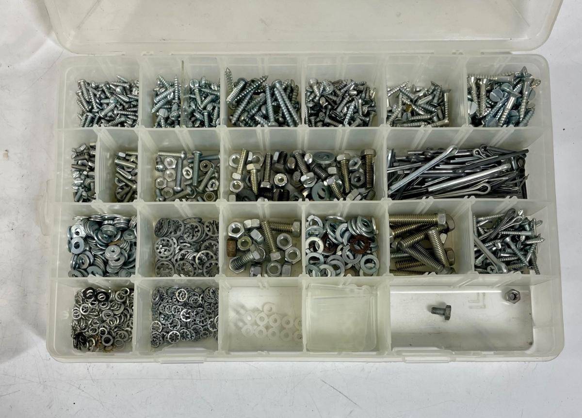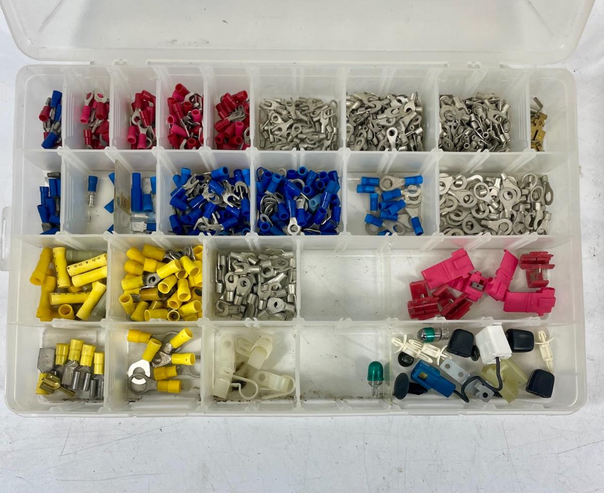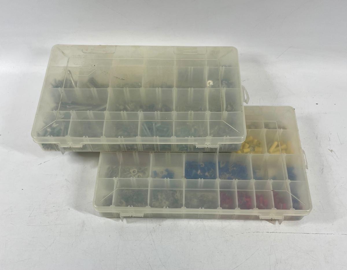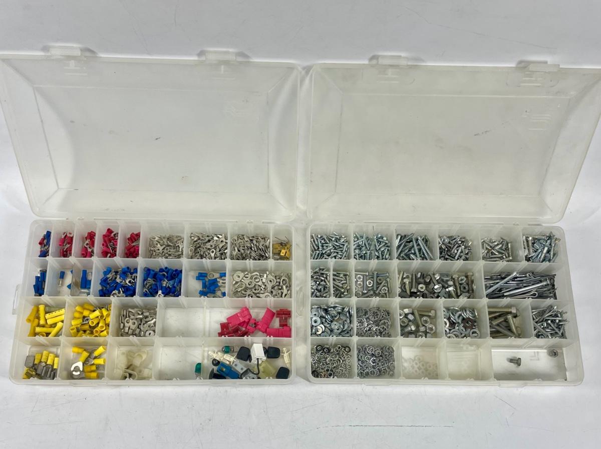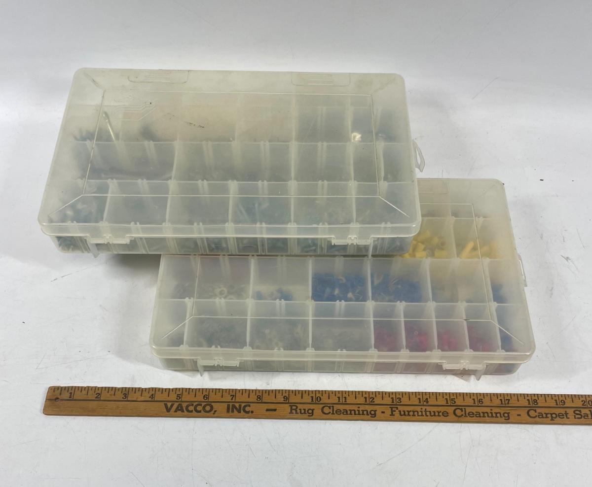 Includes a variety of electrical items and hardware. See photos for detail, cases measure approx. 12" x 14".