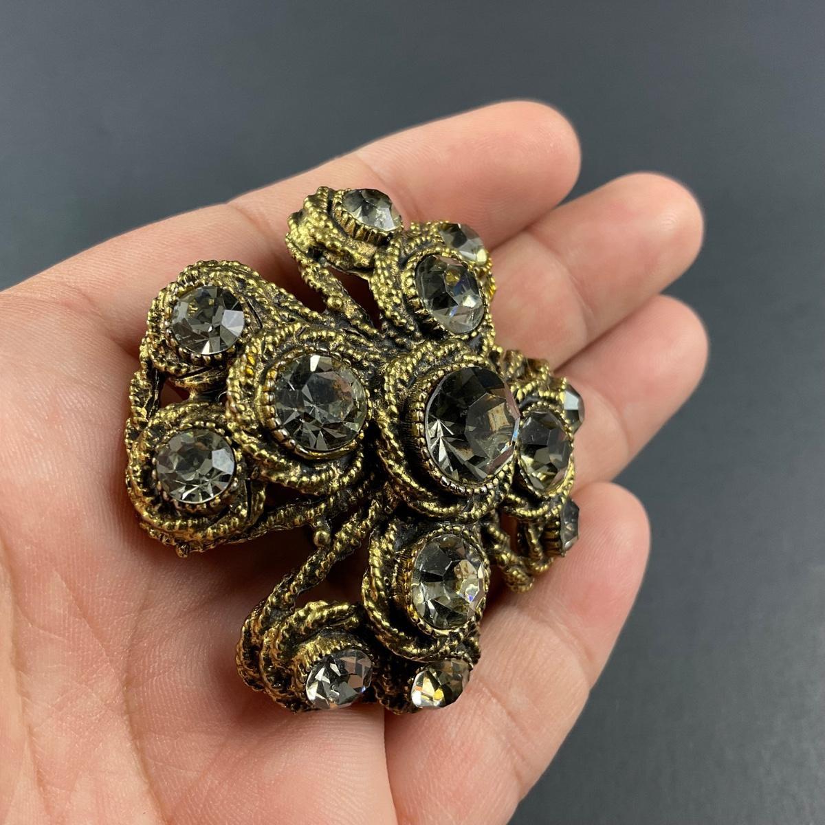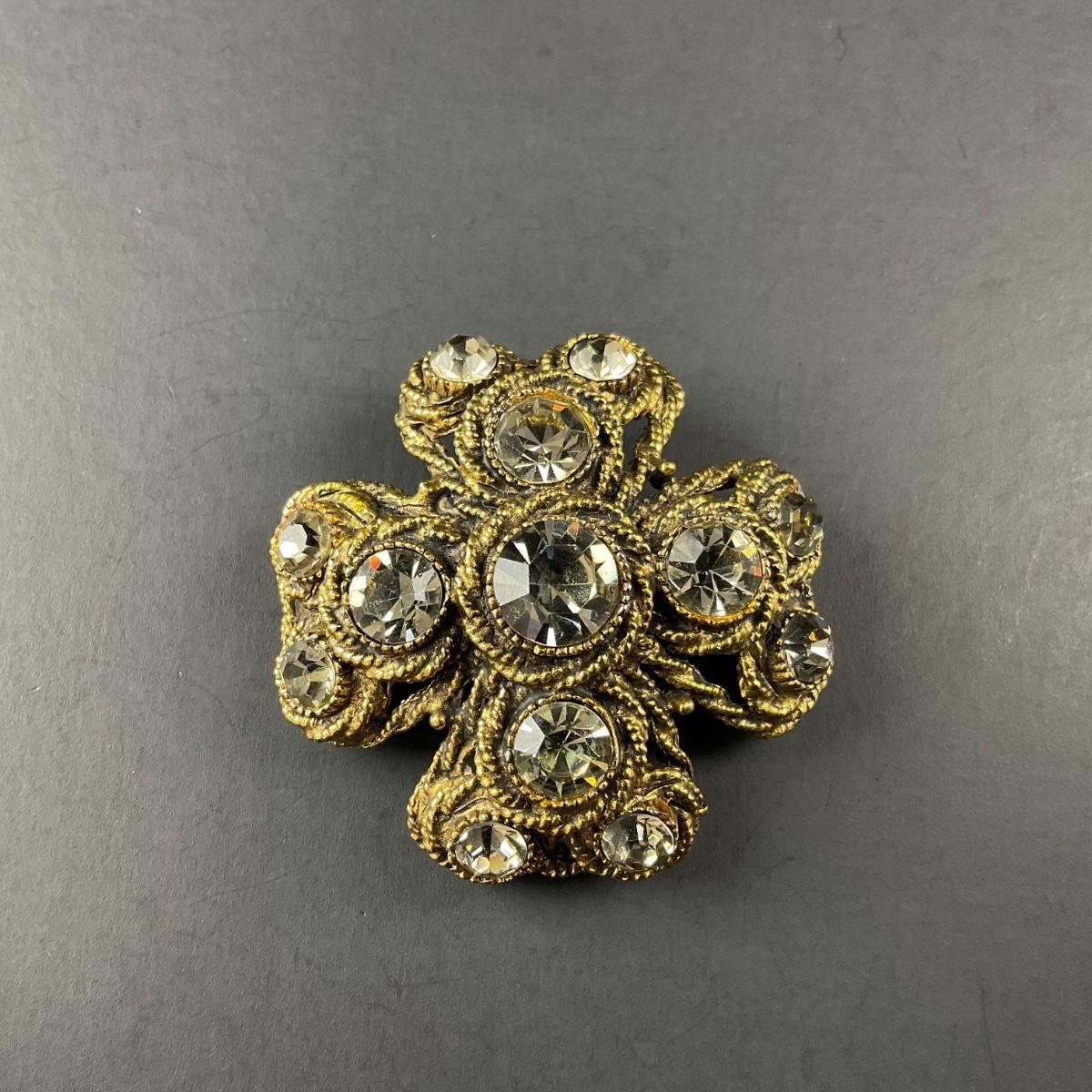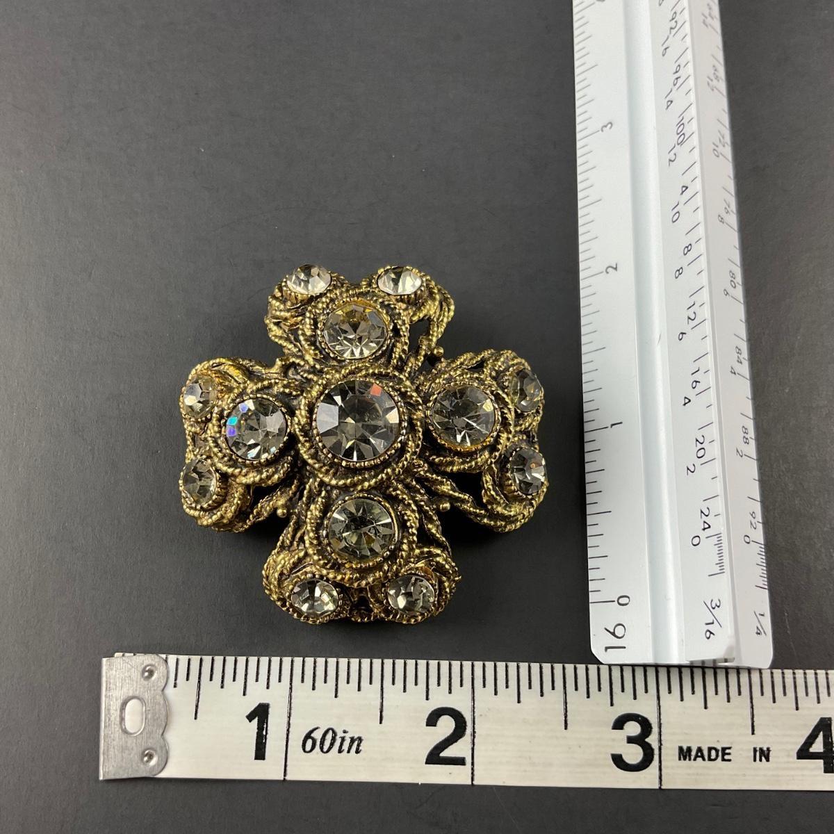 -101- HARGO NY | Maltese Cross Brooch gold Tone & Rhinestone | Marked