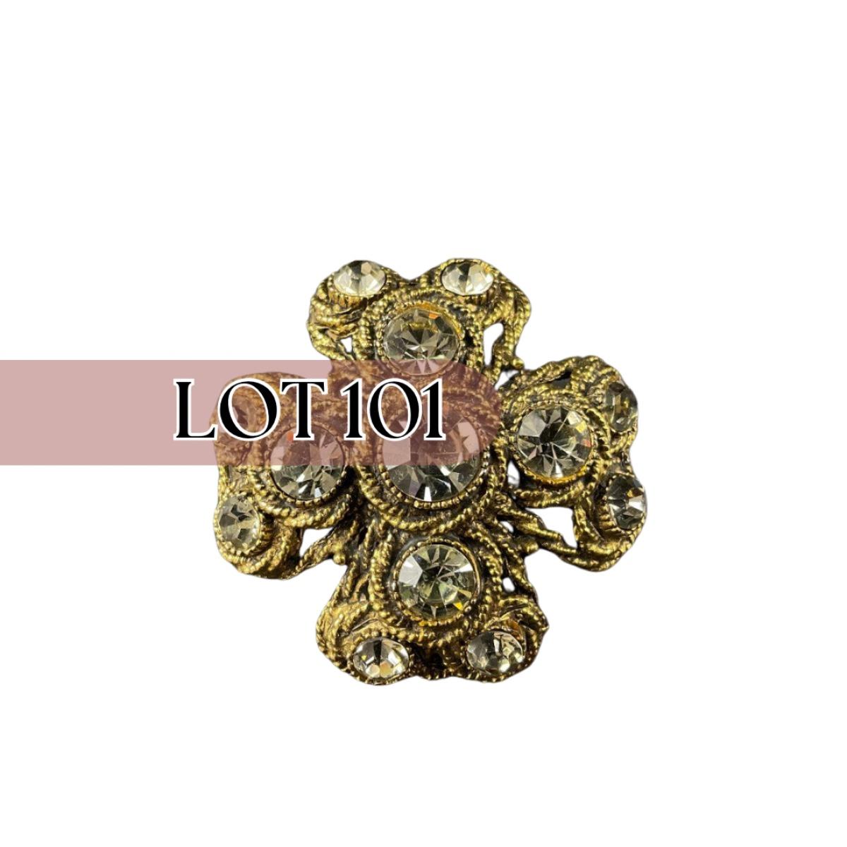 One vintage HAR Maltese cross brooch gold tone and rhinestones signed. Please see photos for details and condition. Any condition statement is given as a courtesy to a client, is an opinion, and should not be treated as a statement of fact. Reference to condition written, oral or within a condition report shall not be regarded as a full account of condition and may not include all defects, alterations, or restorations. Absence of a condition report does not imply a lot is flawless or lacking imperfections or damage. Katherine’s Auction & Appraisal Service shall have no responsibility for any error or omission. Returns shall not be accepted on the basis of condition. ::: Shipping is available on this lot. If you require shipping you must let us know at the close of the auction. We will coordinate with you after the item has been won. Shipping fees will include insurance up to or exceeding the value of all items being mailed. If you have any questions regarding this lot please contact the auctioneer either via this website, by direct email or by phone. PICK UP TIMES and other important information can be found in the TERMS and DESCRIPTION of the auction. Please take a look for pertinent information. Thanks!
