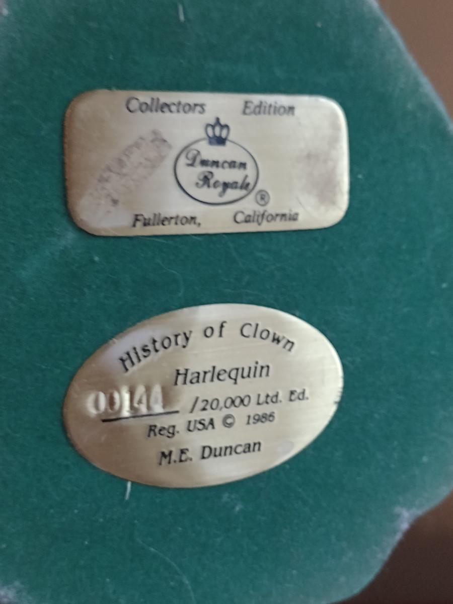 "Harlequin" History of Clown by Duncan Royale Vintage Figurine (1986)- Limited Edition and Numbered with Box