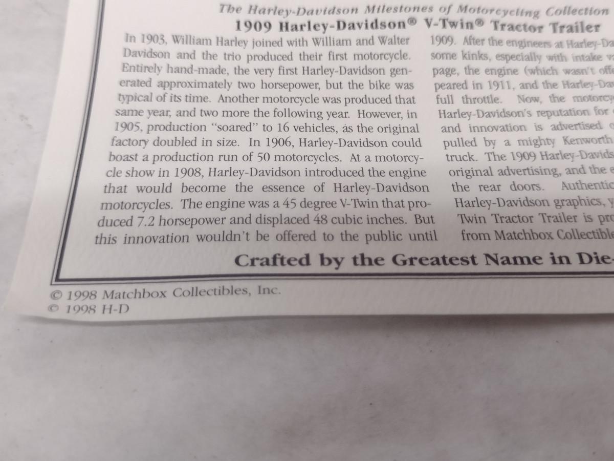 Harley Davidson 1909 V-Twin Tractor Trailer with COA and Original Box (#50)