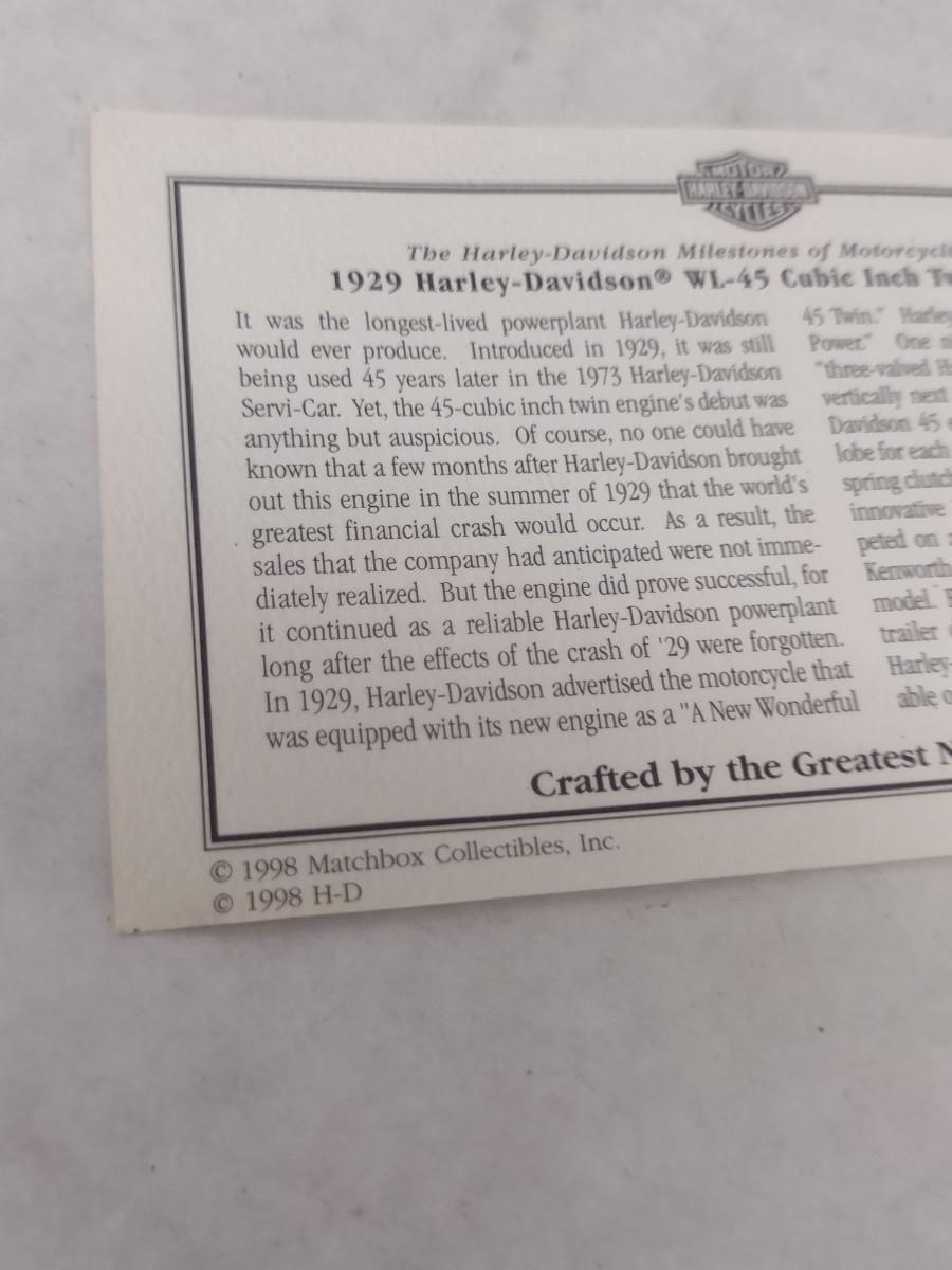 Harley Davidson 1929 WL-45 Cubic Inch Twin Tractor Trailer with COA and Original Box (#51)