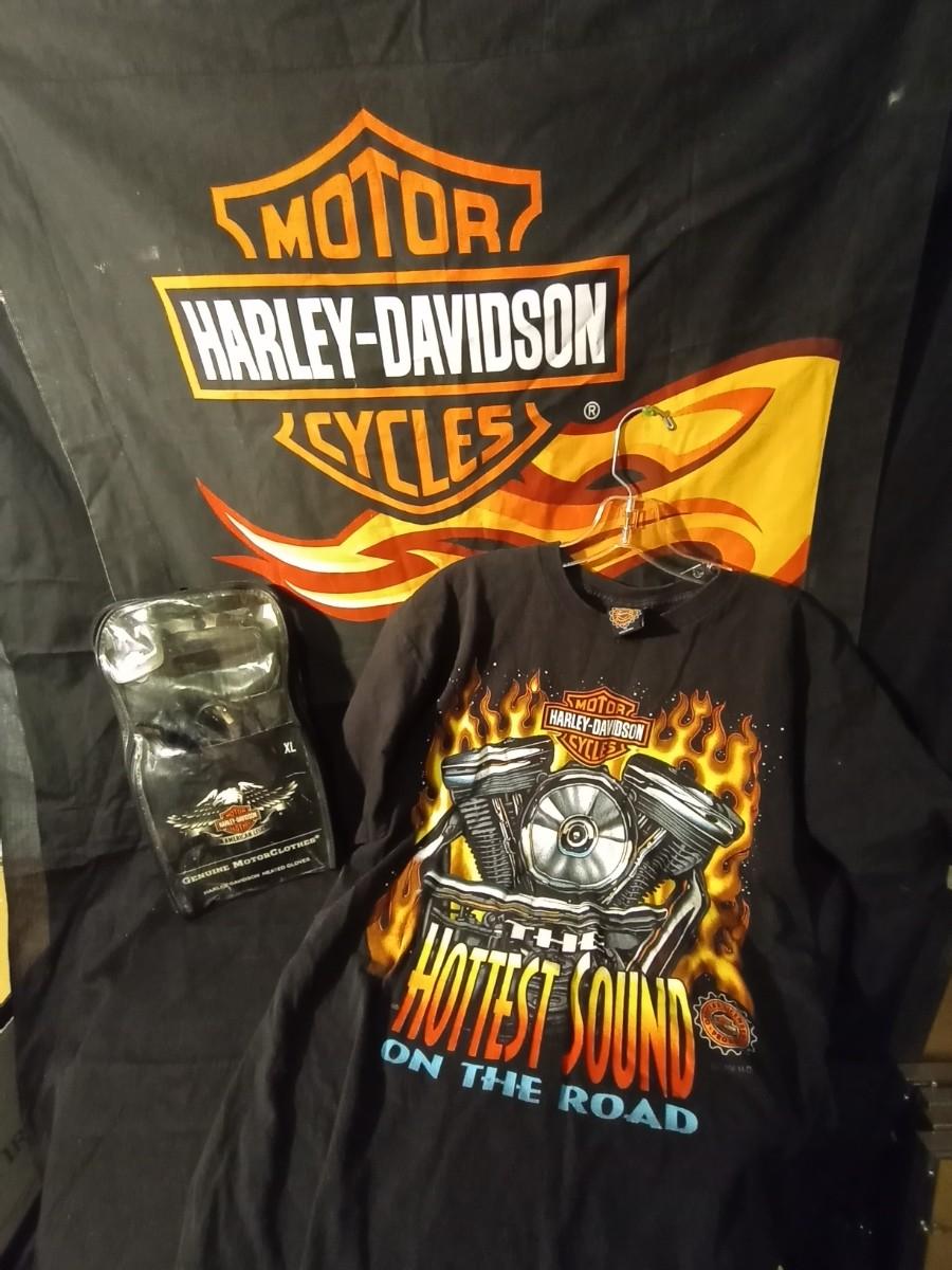AUTHENTIC HARLEY DAVIDSON HEATED GLOVES-TSHIRT AND PILLOW SHAM