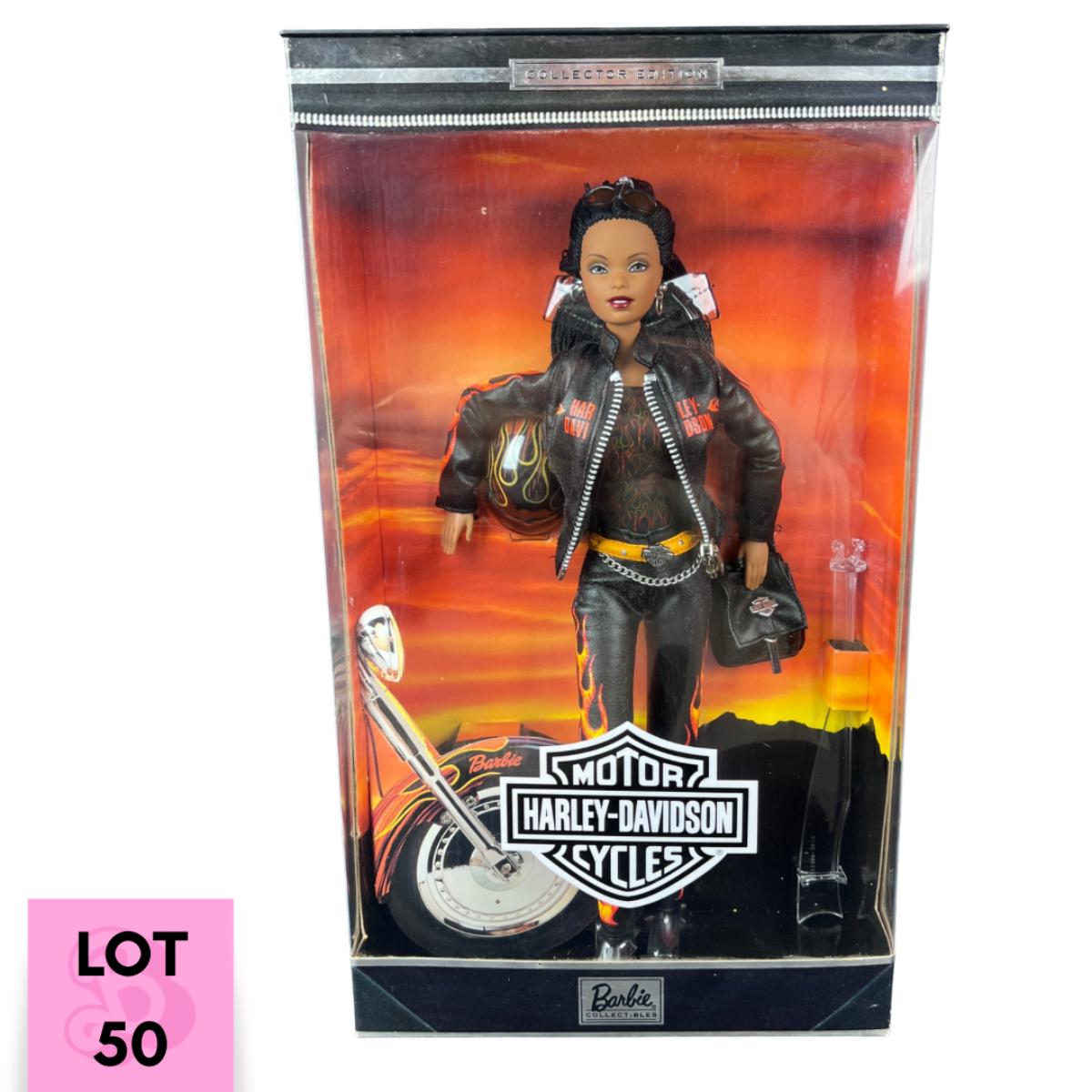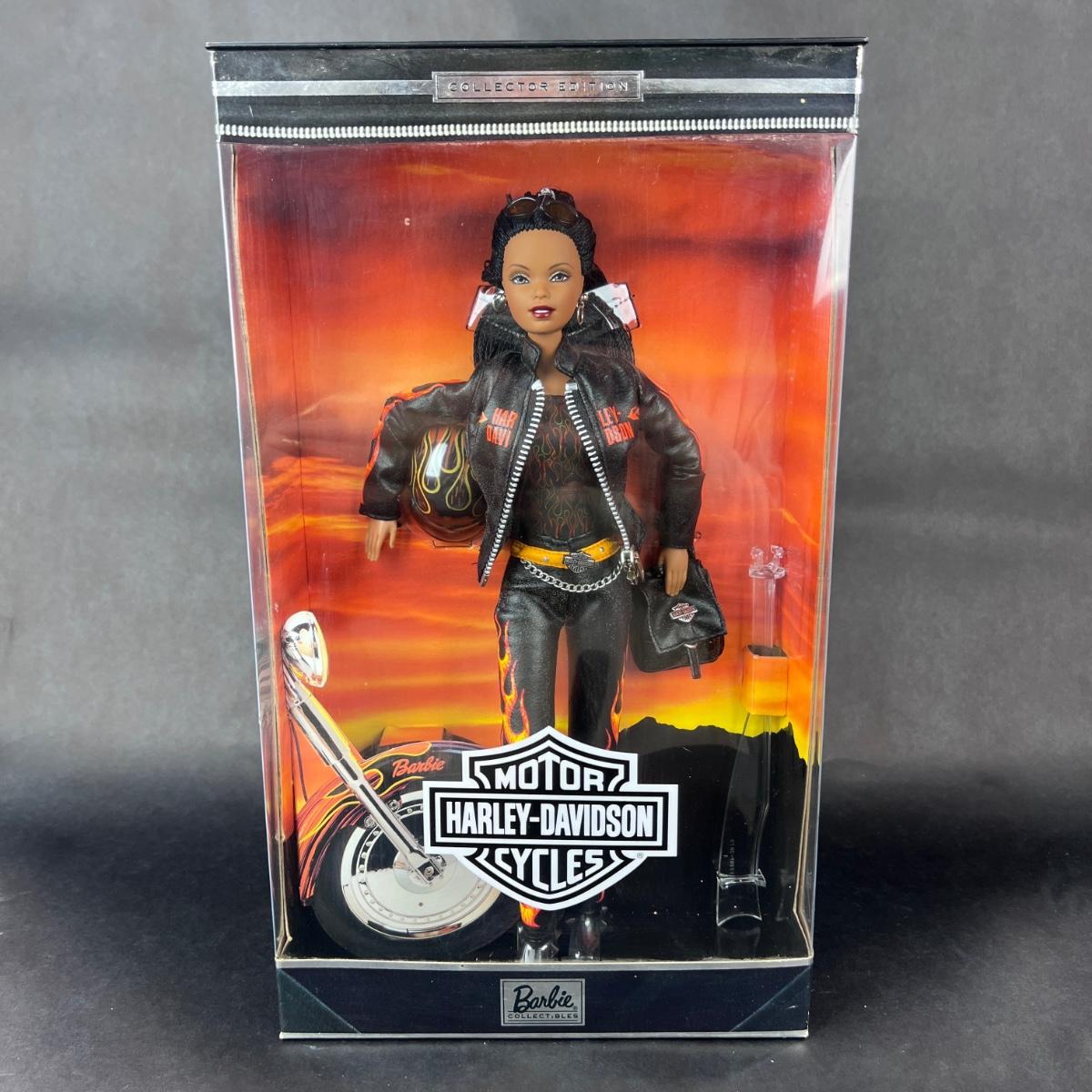 Once the adventure begins, it never ends. The road burns up, fanning the flames of excitement that could only come from riding a motorcycle. Barbie doll thunders past in a rush of night air, disappearing into the glowing backdrop of an American sunset. She always plays it cool, even in the heat of the moment, with Harley-Davidson Motorcycles. This doll was produced in 2000 with a partnership between Harley Davidson and Mattel. Doll has not been out of the box. **|** Please see photos for details and condition. ::: Shipping is available on this lot. If you require shipping you must let us know at the close of the auction. We will coordinate with you after the item has been won. Shipping fees will include insurance up to or exceeding the value of all items being mailed. If you have any questions regarding this lot please contact the auctioneer either via this website, by direct email or by phone. PICK UP TIMES and other important information can be found in the TERMS and DESCRIPTION of the auction. Please take a look for pertinent information. Thanks!