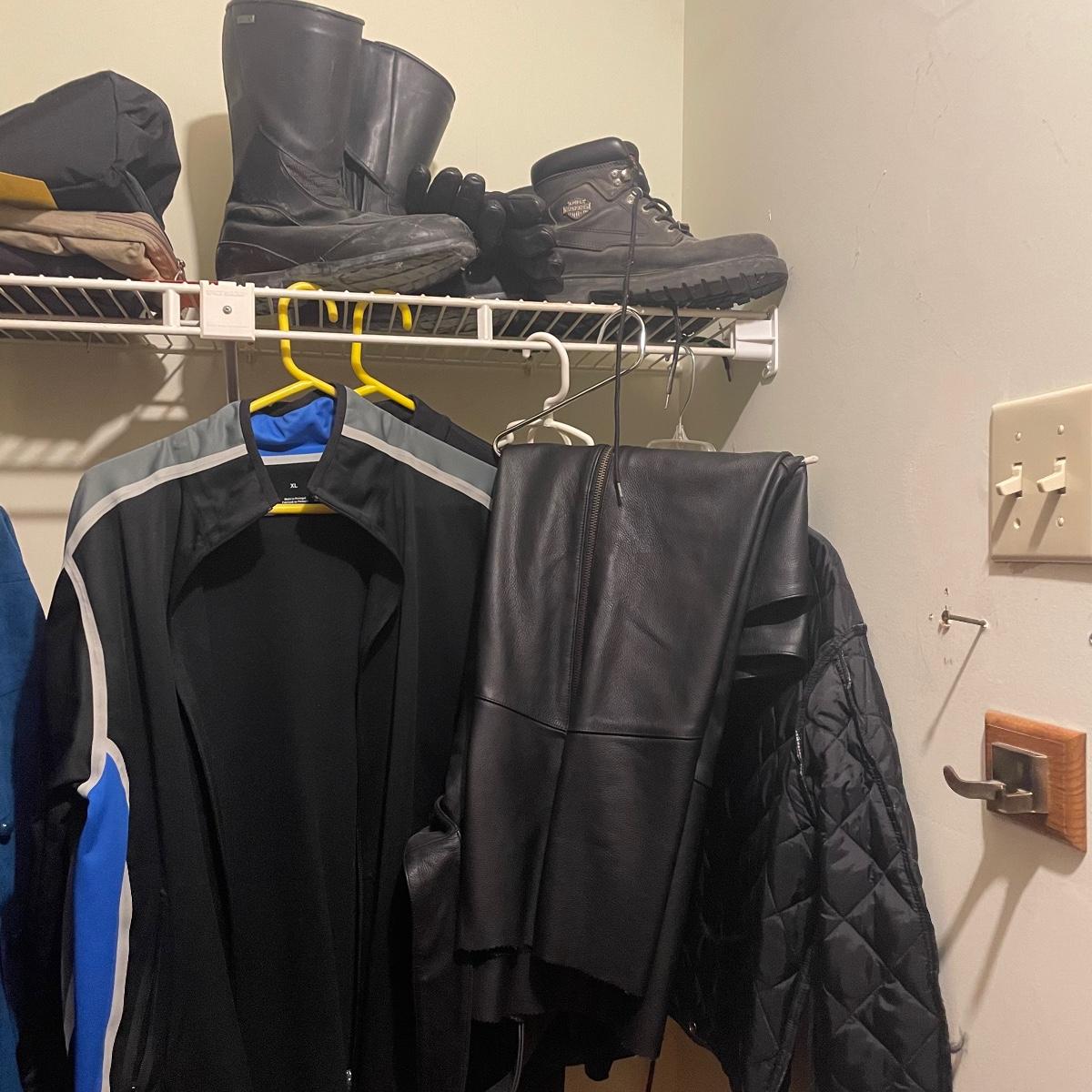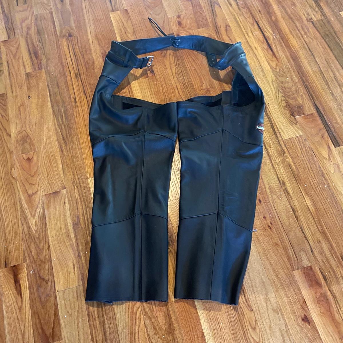 A great assortment of motorbike gear for the adventurous lady! The Harley Davidson chaps are in excellent condition and have an adjustable waist belt and a 30” inseam. The 9.5 sized boots are also Harley. See images for labels and sizes.
