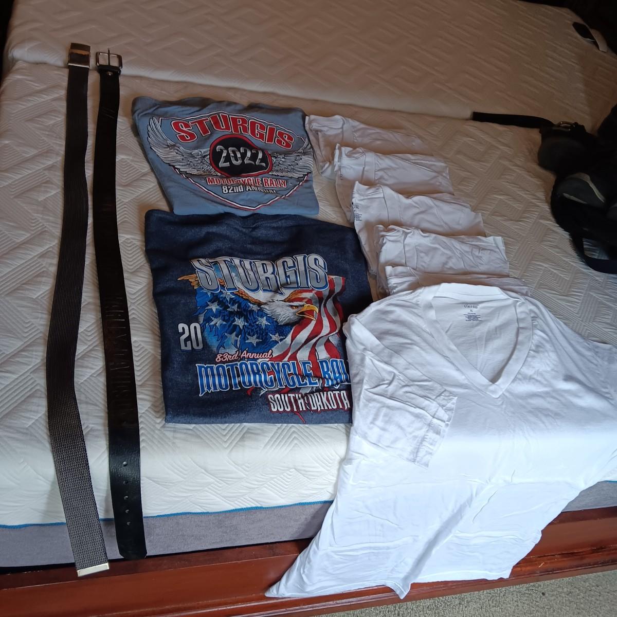 HARLEY DAVIDSON LEATHER BELT (38) STURGIS AND V-NECK TSHIRTS (XL)