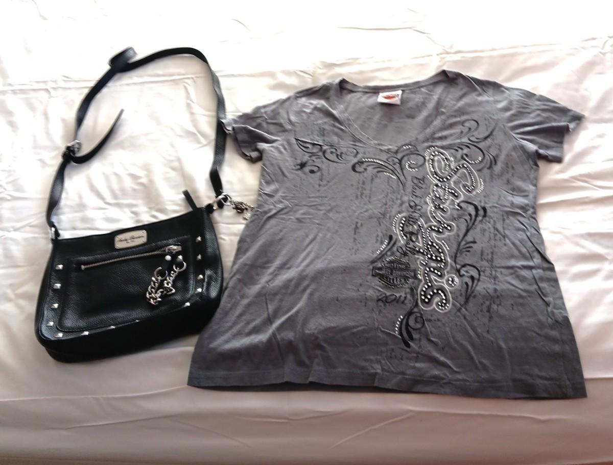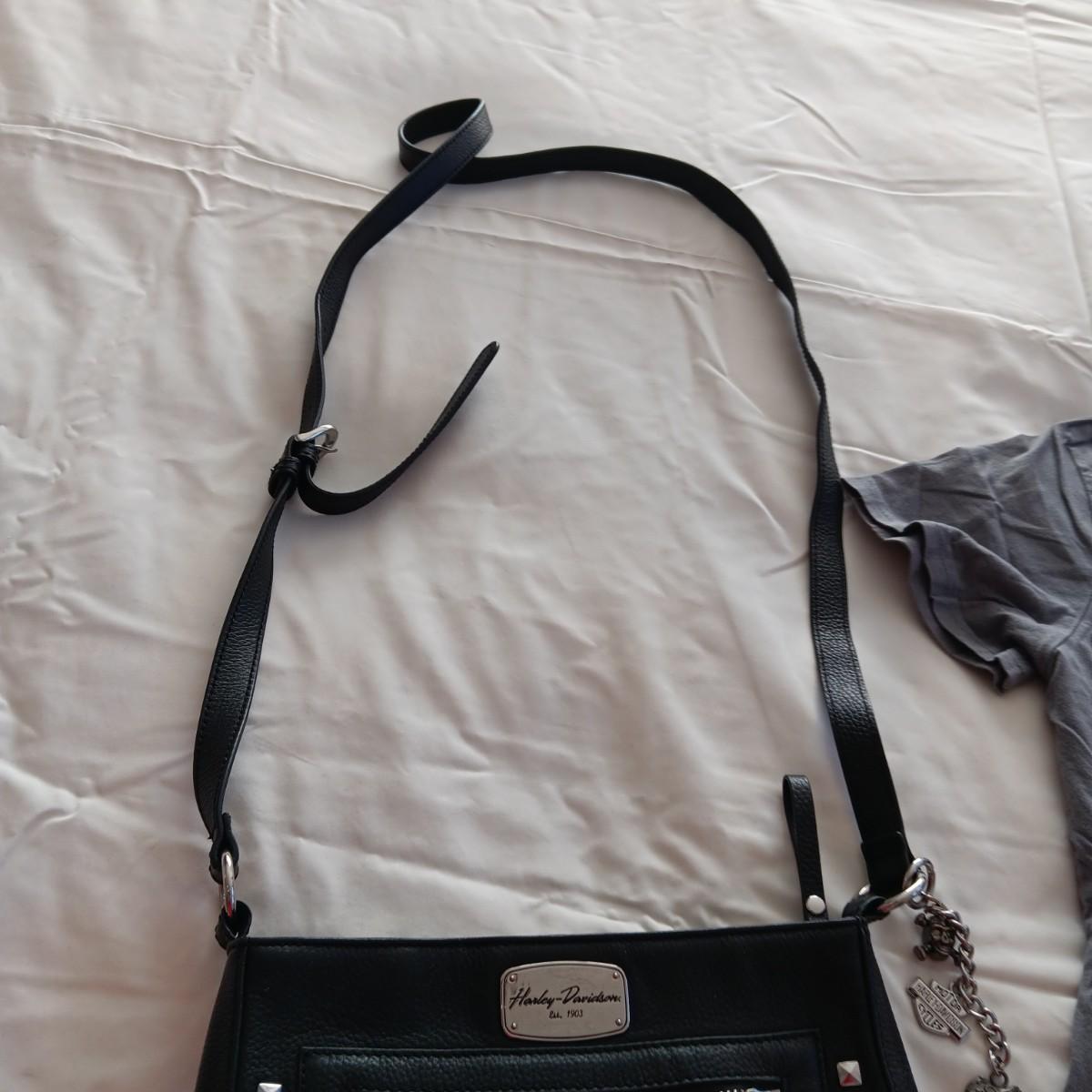 HARLEY DAVIDSON LEATHER PURSE AND LADIES LARGE SHIRT