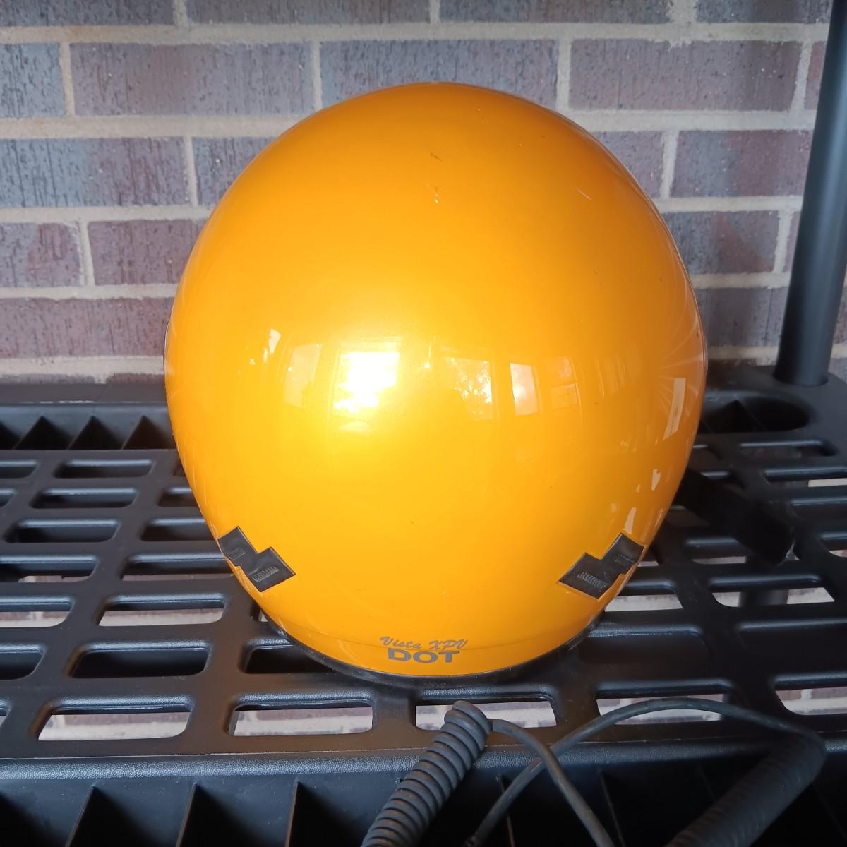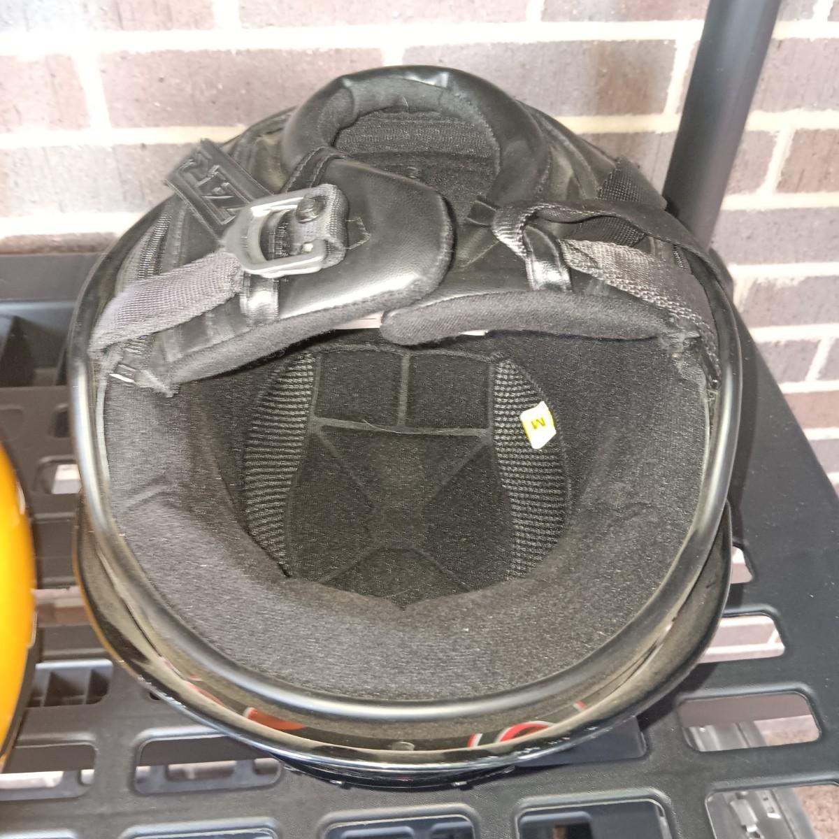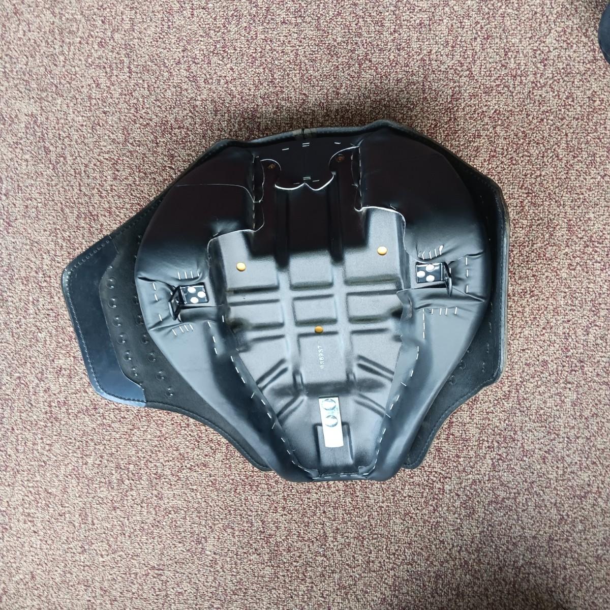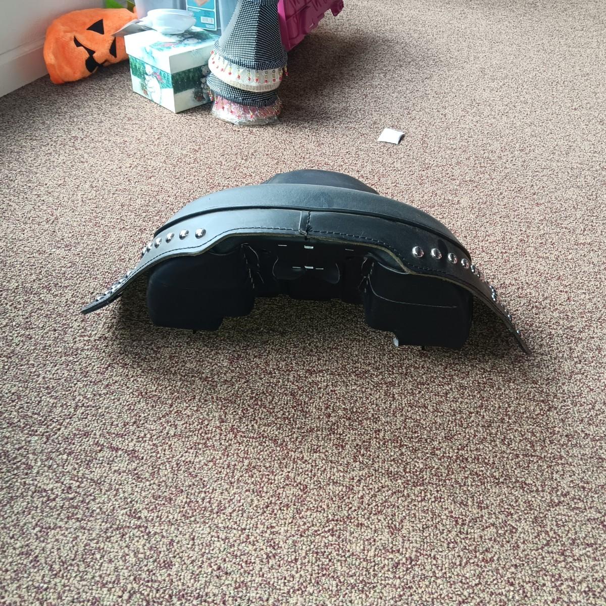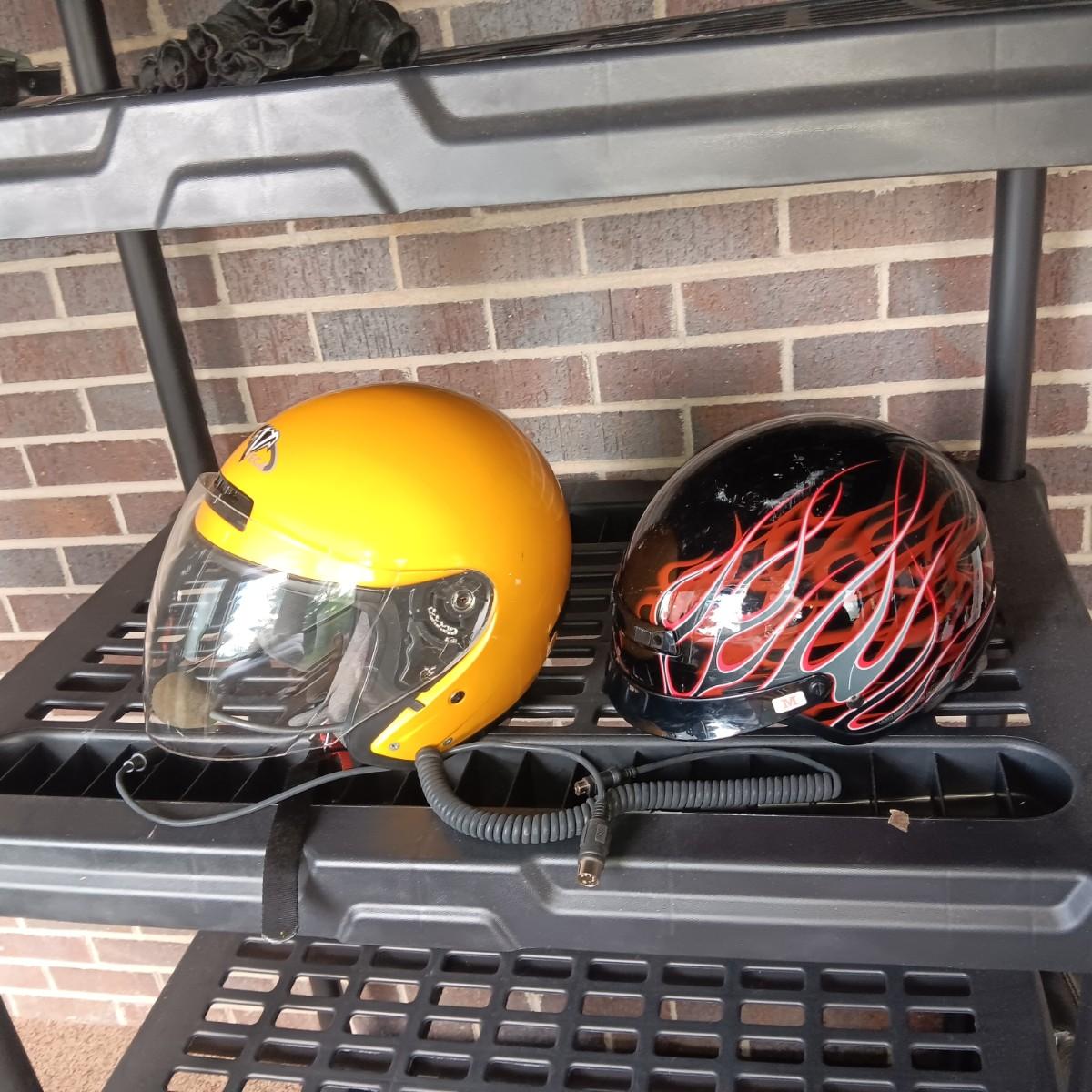 HARLEY DAVIDSON LEATHER SEAT, LARGE VEGA HELMET AND MEDIUM HELMET