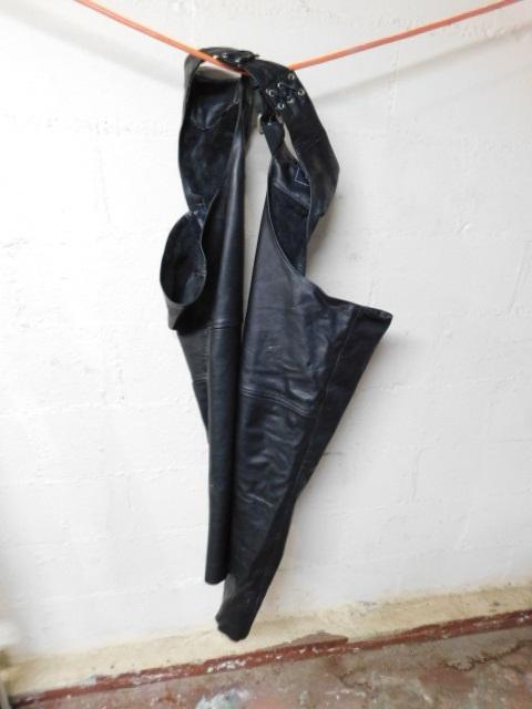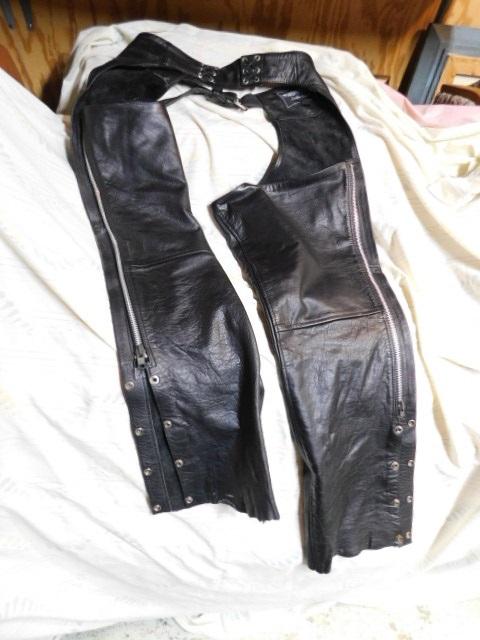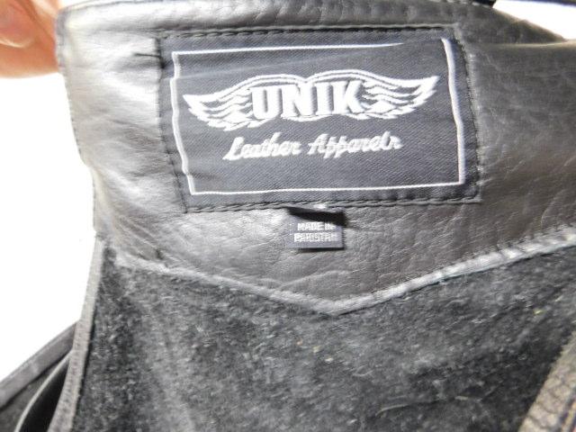 Harley Davidson Riding Jacket and Leather UNIK Chaps Men's XXL used condition. Jacket collar has discoloration as shown