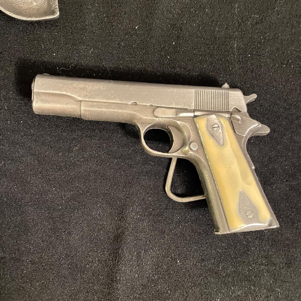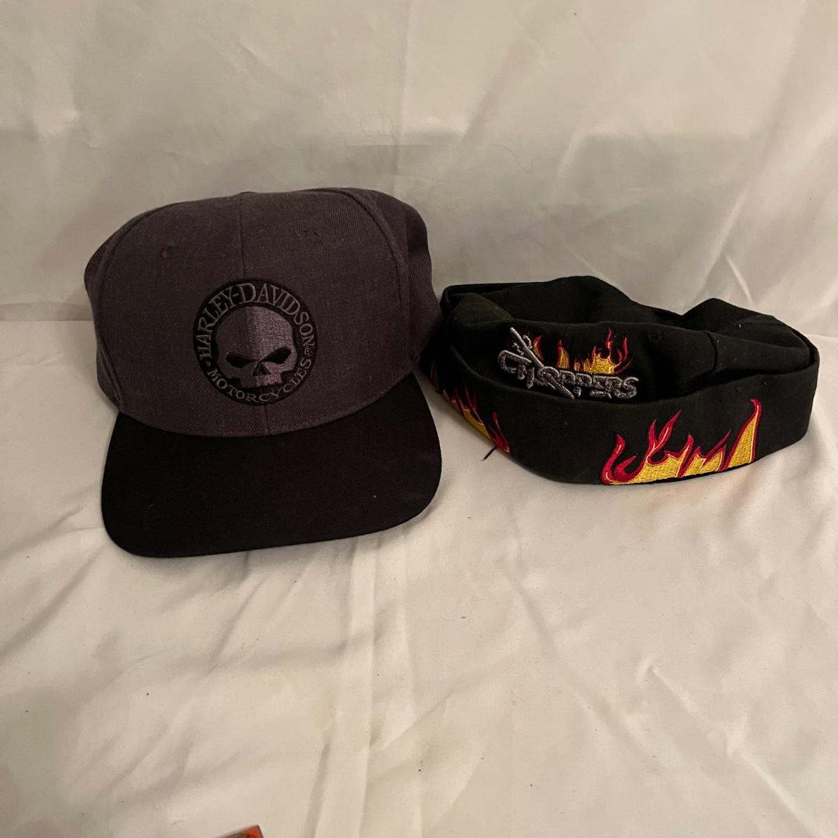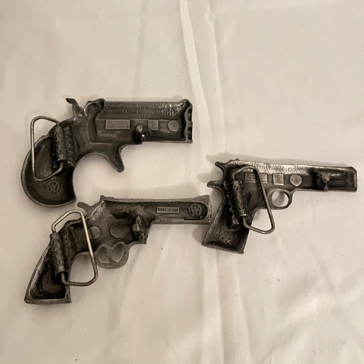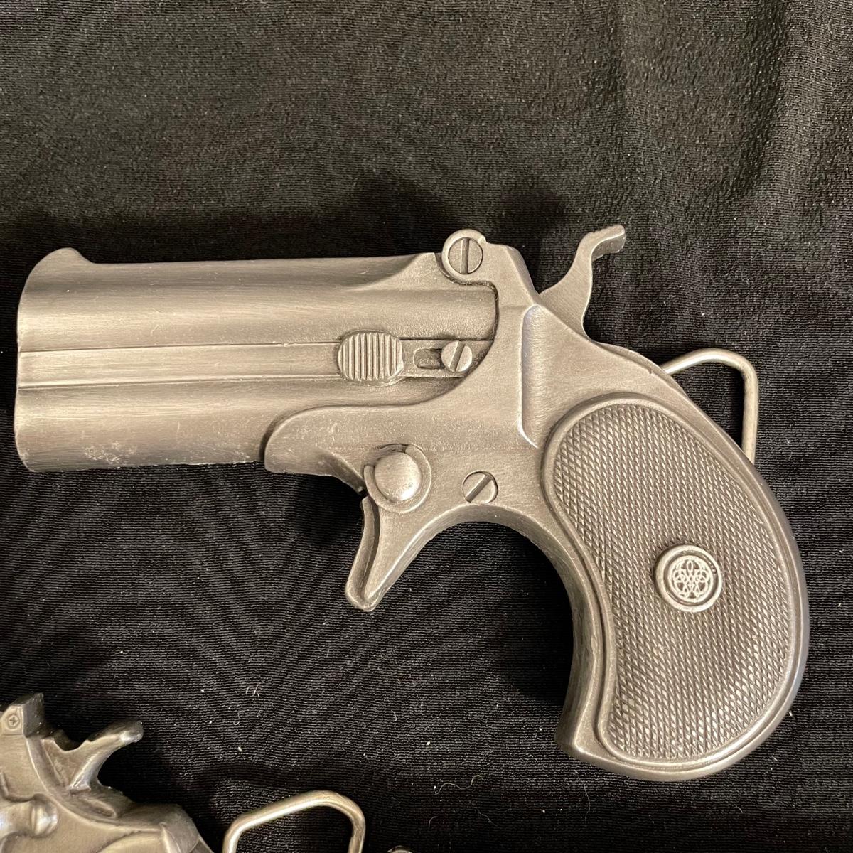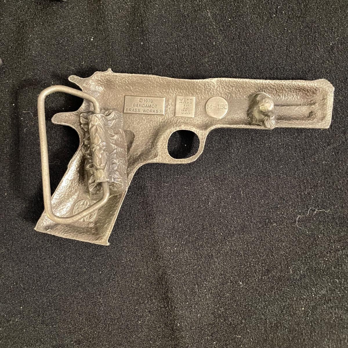 Lot includes three Bergamot pistol belt buckles, array of patches, two hats, Hallmark ornament, three mugs, water bottle and two leather belts that measure 1.25” x 52”Long.