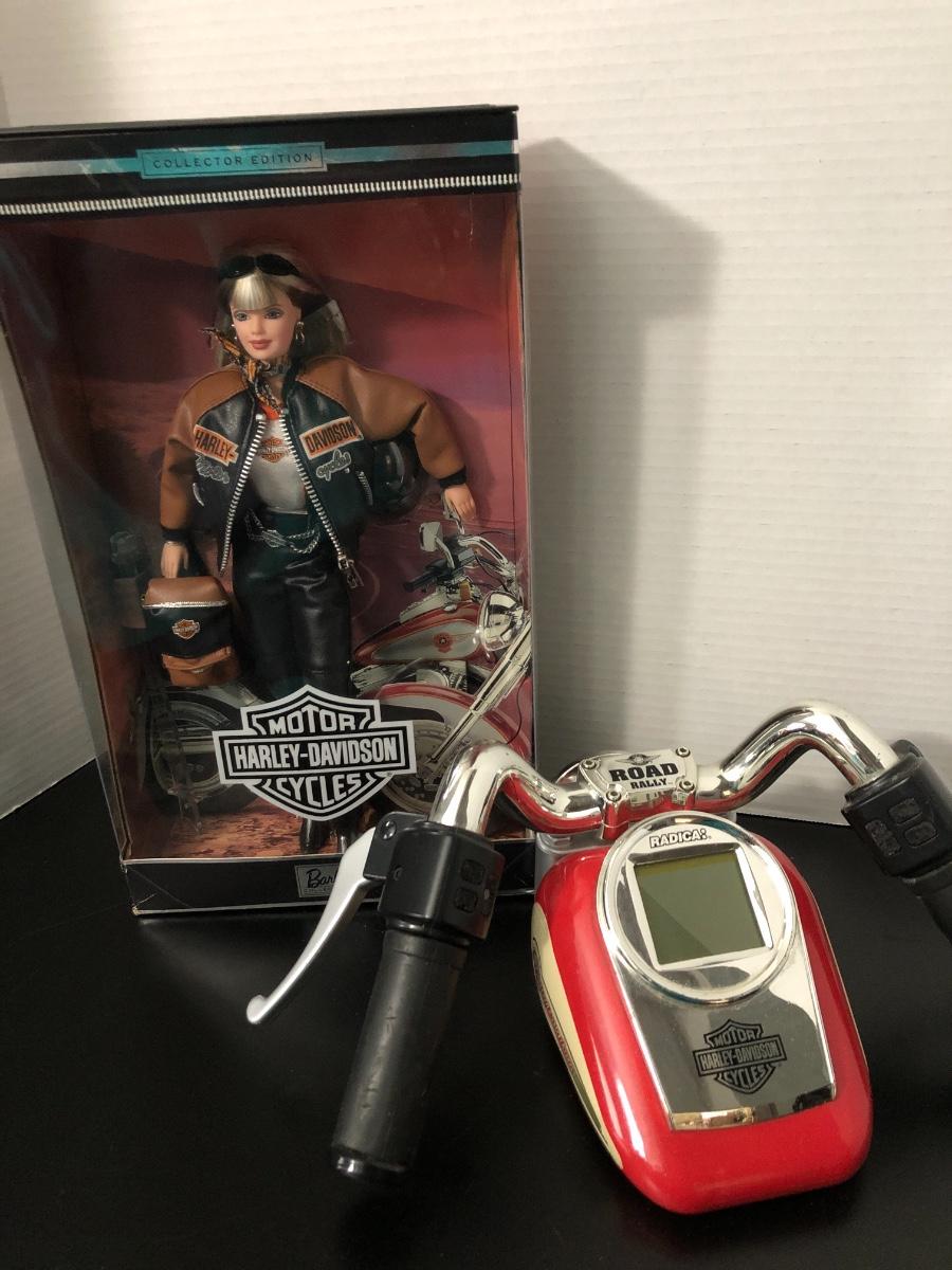 All items are sold as is, as found in the estate. Please see all photos for content, measurements and condition. The Harley Davidson Barbie is new-sealed in package. Road Rally untested, needs batteries.