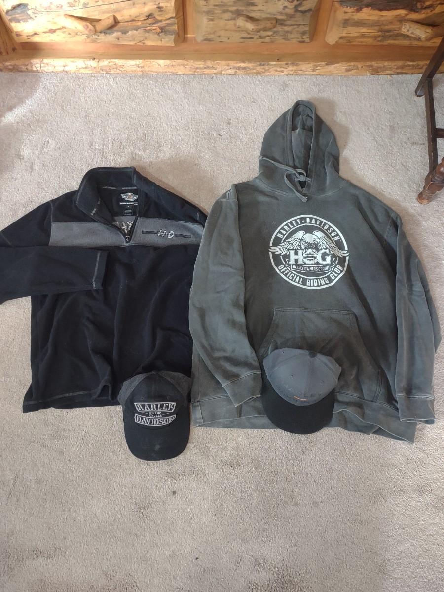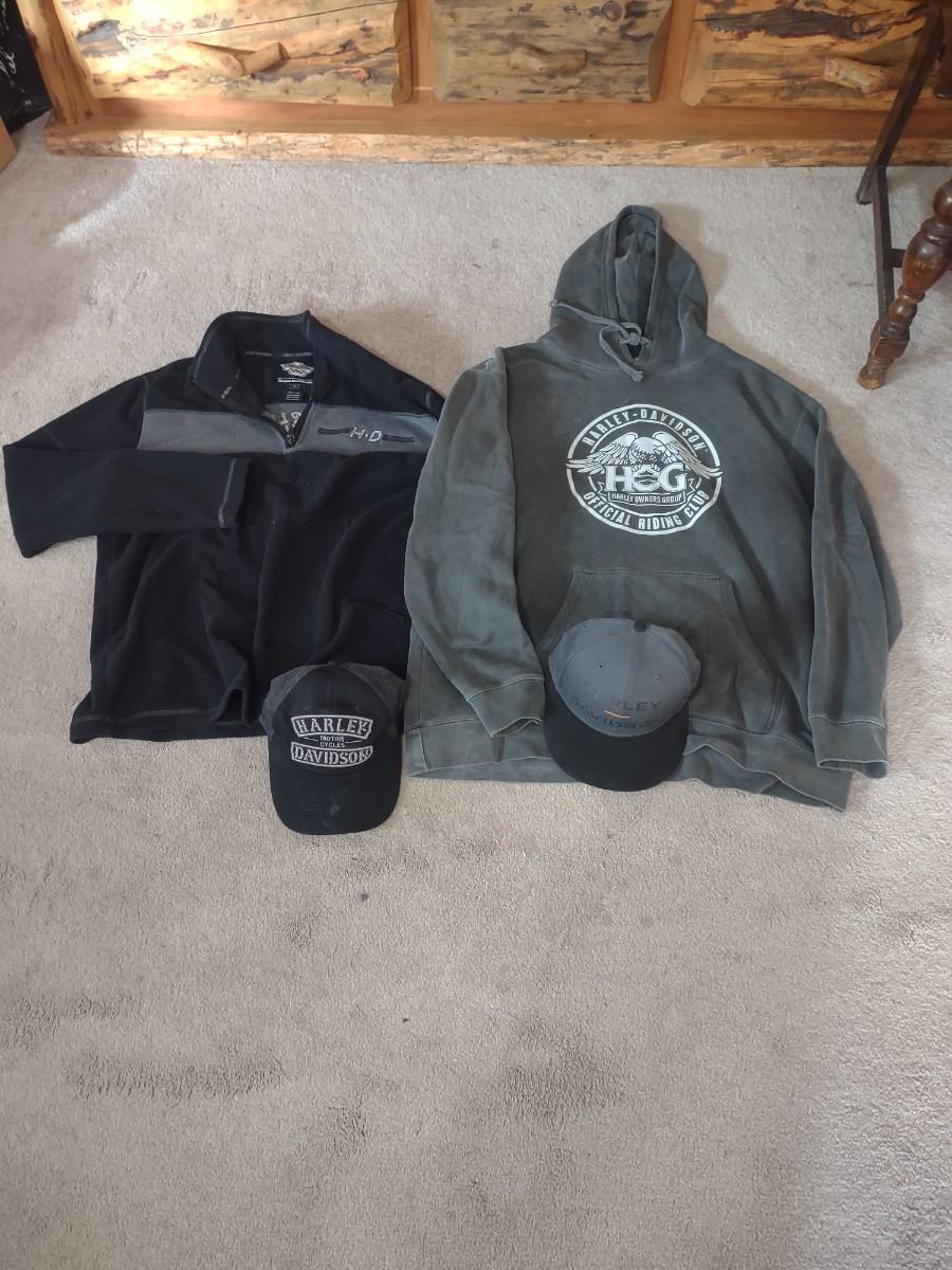 HARLEY-DAVIDSON HOODIE, HD SWEATER, TWO HARLEY BASEBALL CAPS
