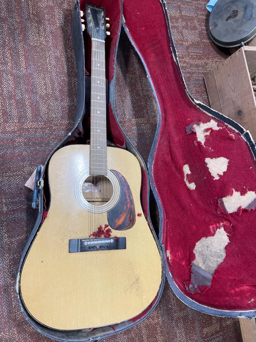 Harmony acoustic guitar and case