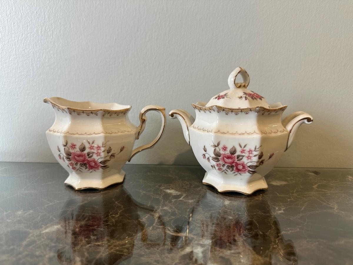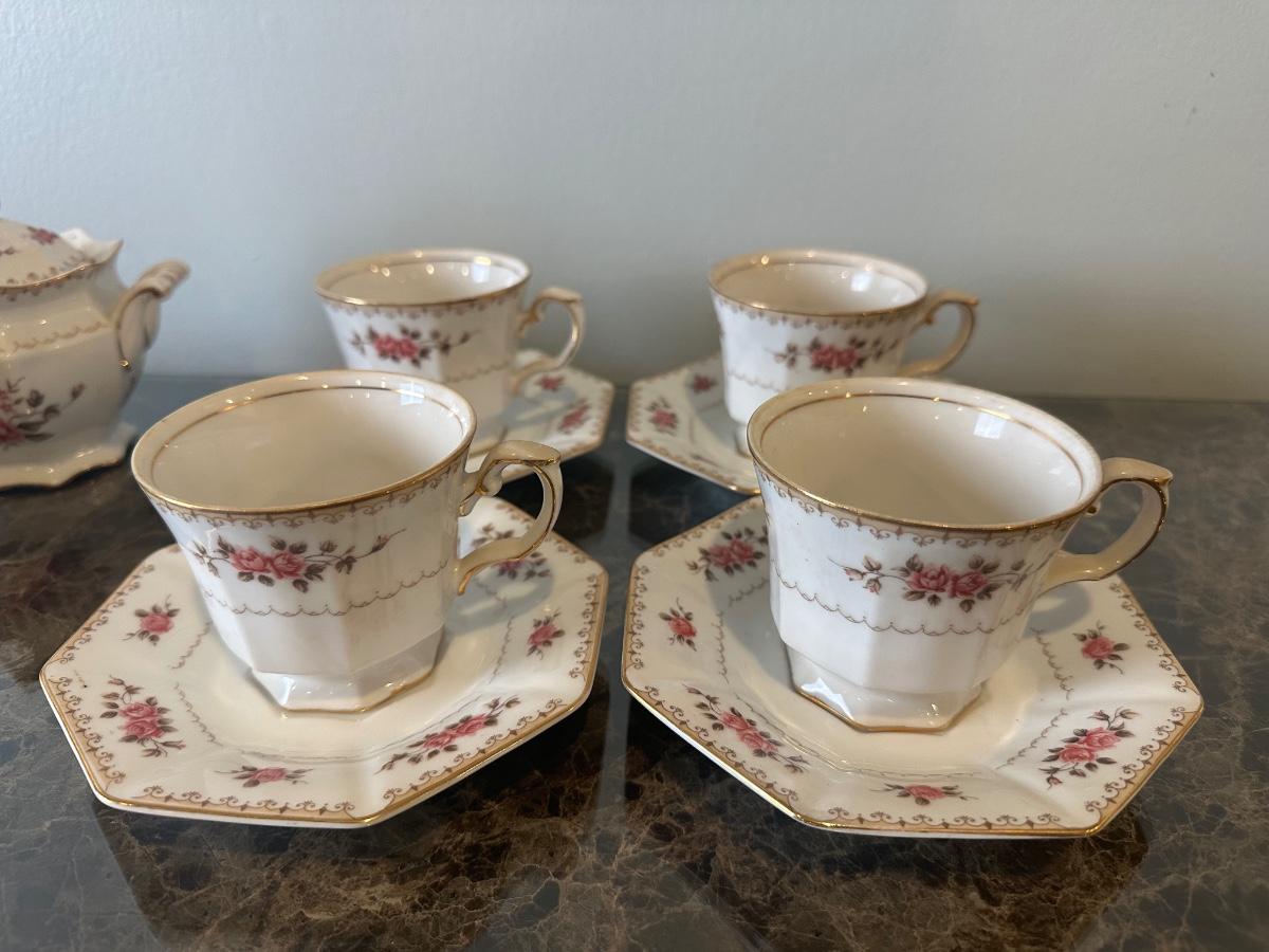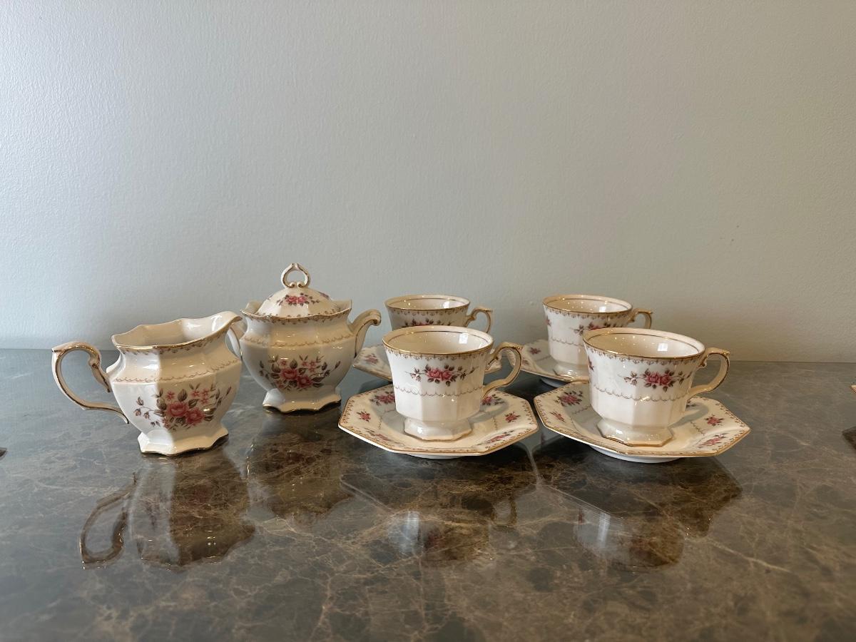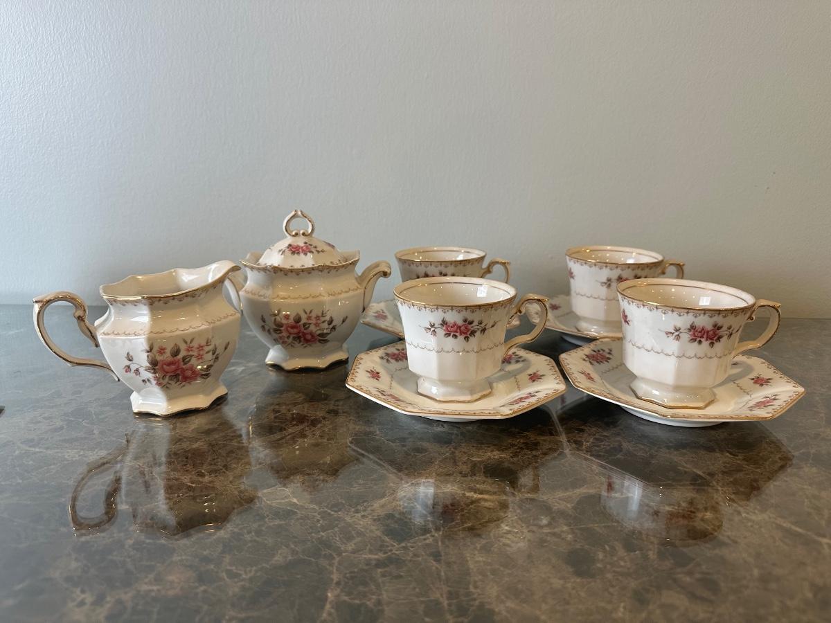 Harmony House Rosette China Tea Set – Cups, Saucers, Creamer & Sugar