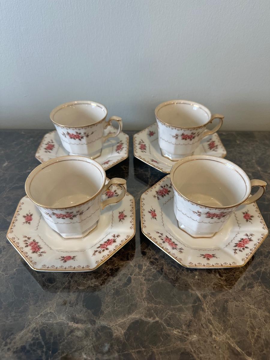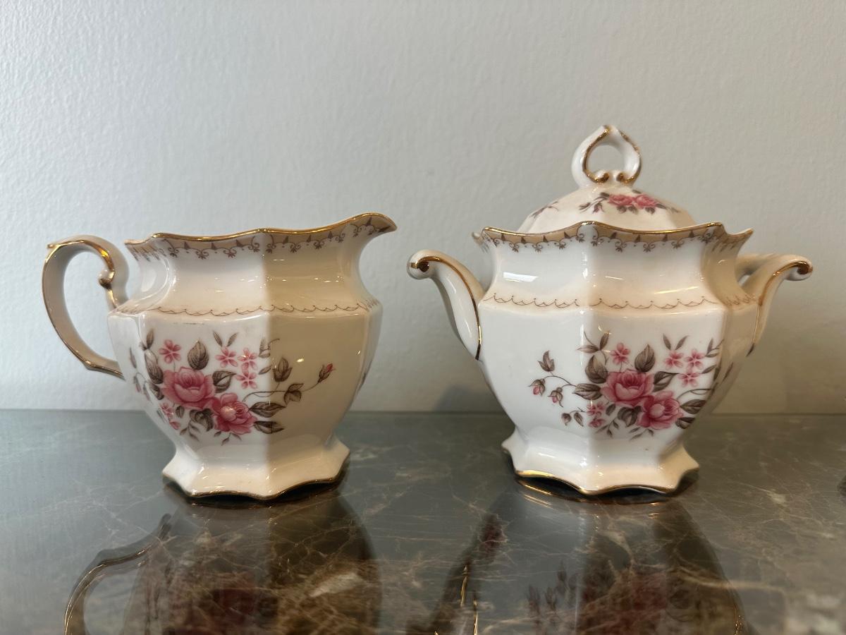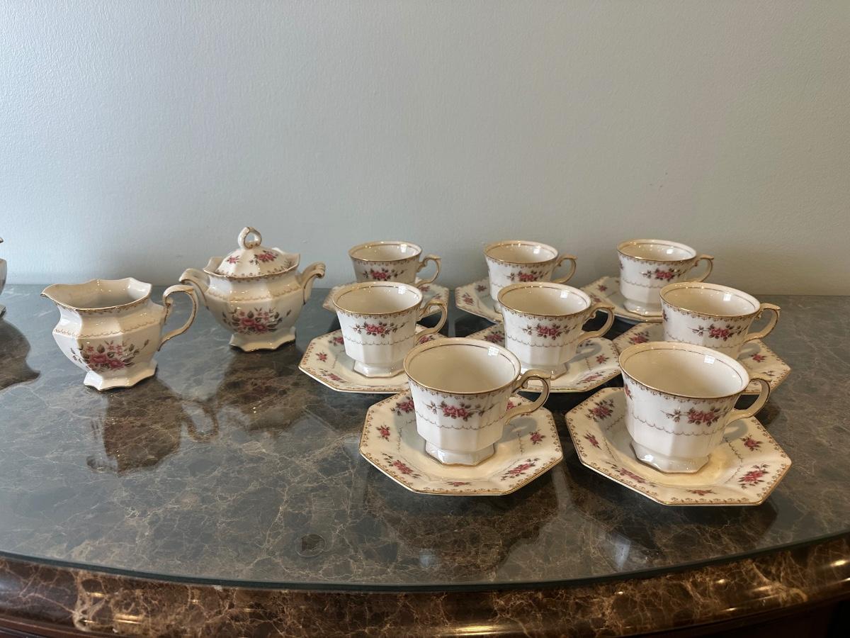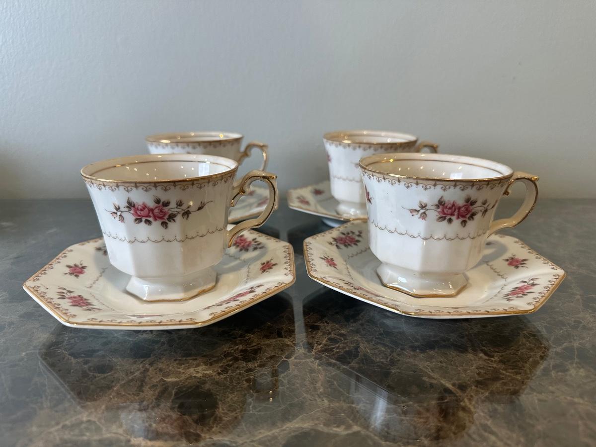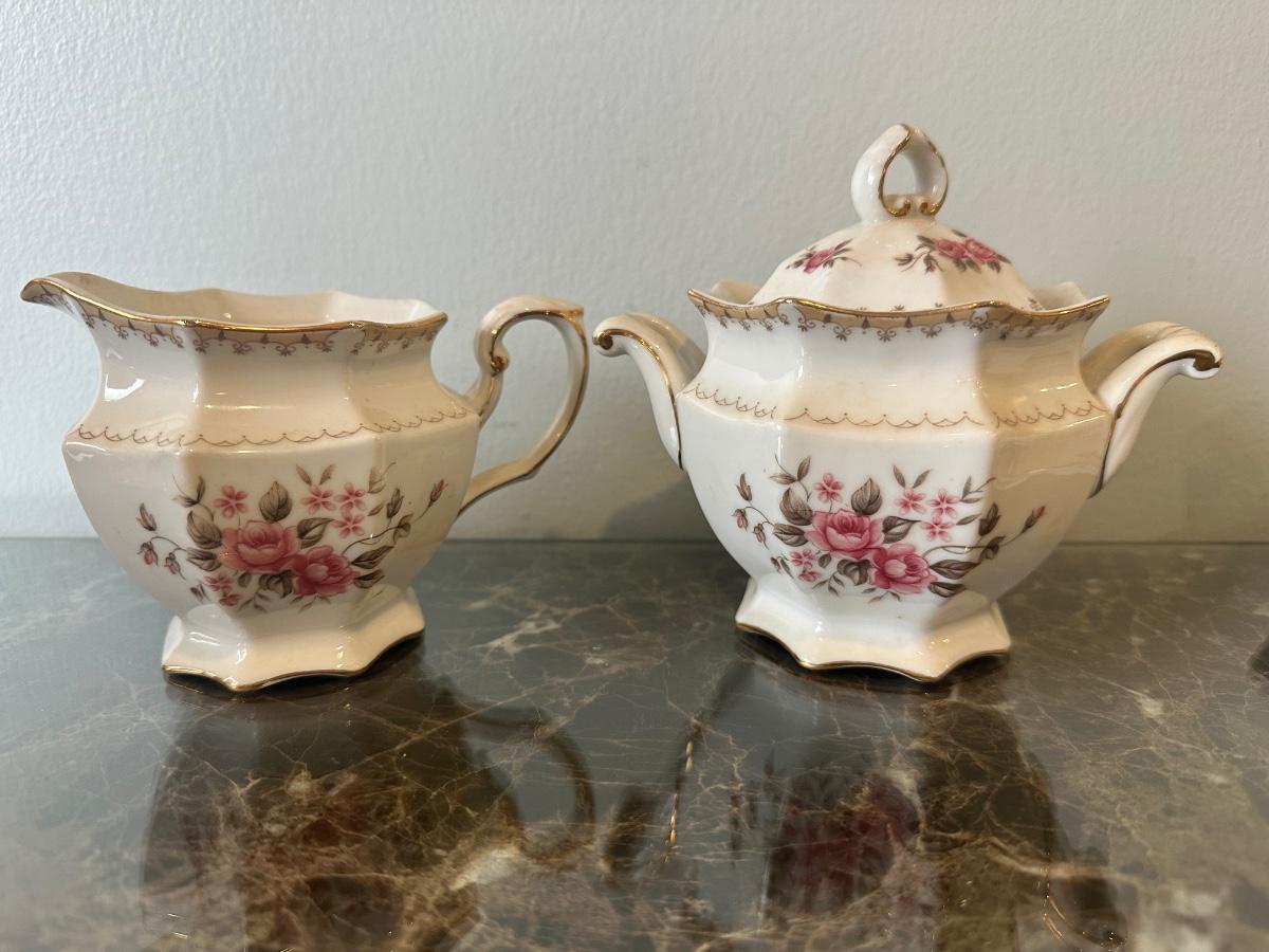 Harmony House Rosette China Tea Set – Cups, Saucers, Creamer & Sugar