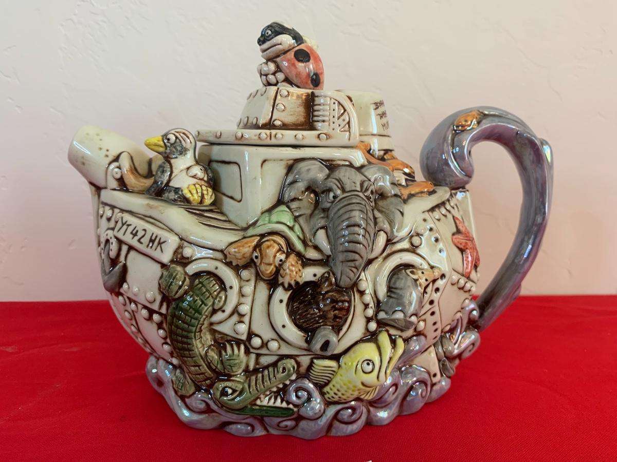 Like new ceramic Harmony Kingdom Noah’s Ark teapot. 10” long