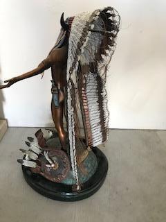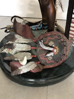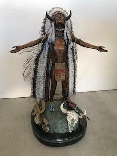Harold Shelton Statue called “Prayer for the Return of the Buffalo” Numbered 40/76. Limited Edition. 32” H x 15” W approx. Marble base is 20” L x 21” W. Stunning piece-level of detail is breathtaking. In excellent condition.