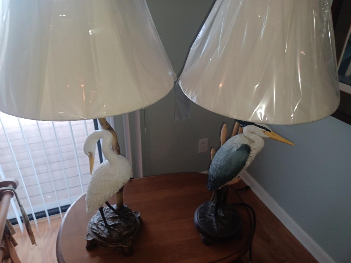 Excellent working condition bird lamp set . 34 in tall.