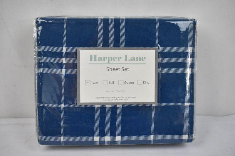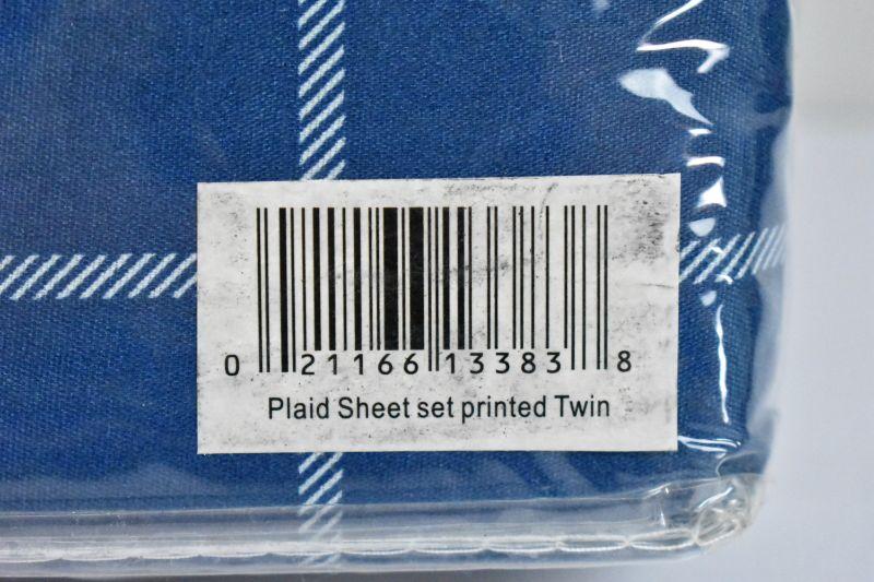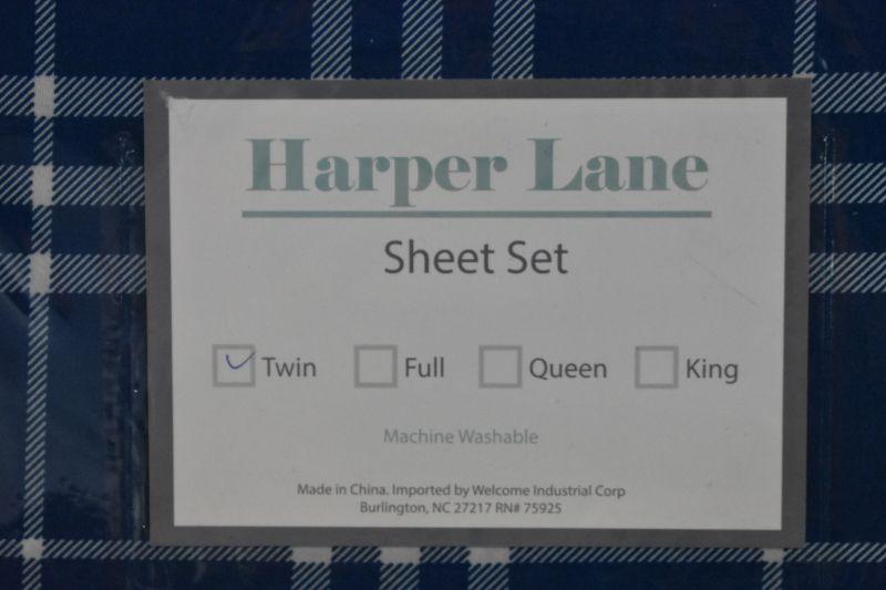 Harper Lane Twin Size Sheet Set Blue & Cream Plaid - New