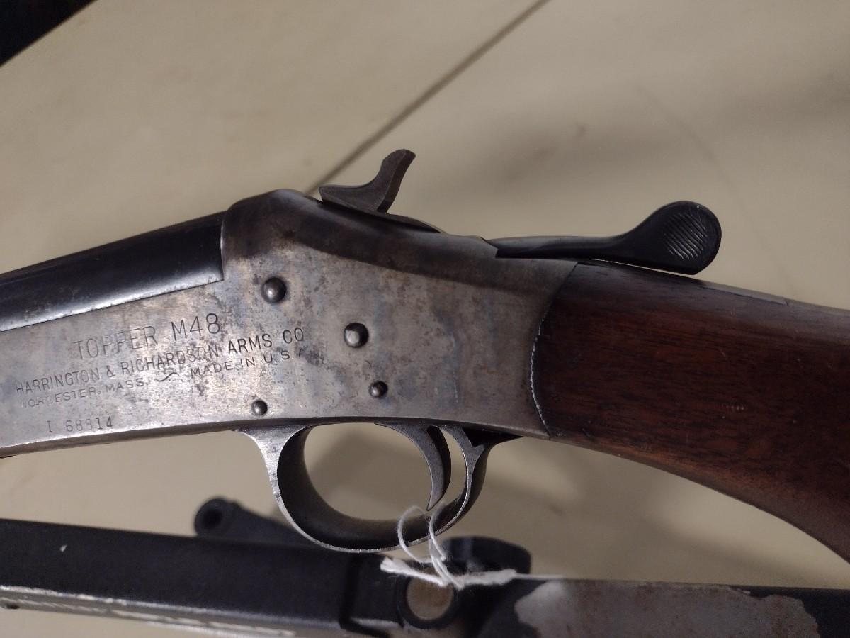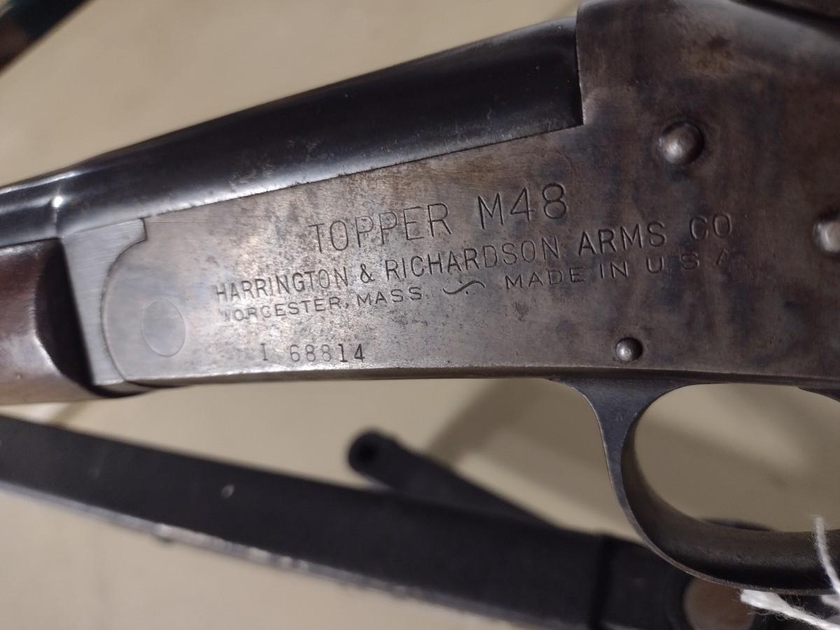 Harrington & Richardson Topper M48 12 Gauge Full Choke Single Shot Shotgun. Must be 18 to purchase with valid ID at pick up. Please make sure you qualify to purchase a firearm prior to bidding. Shipping available to local FFL only. No direct shipping. No guarantees or warranties as to working condition. Firearm has not been tested by auction firm.