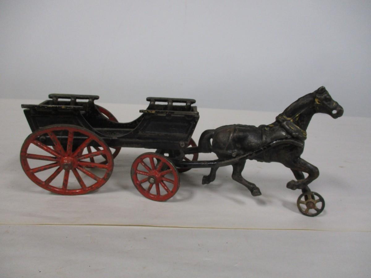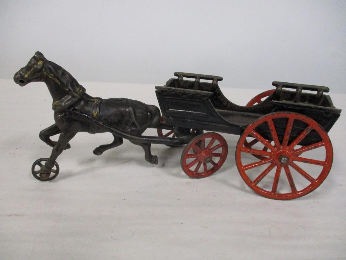 Vintage Harris Cast Iron Horse Drawn Farm Wagon