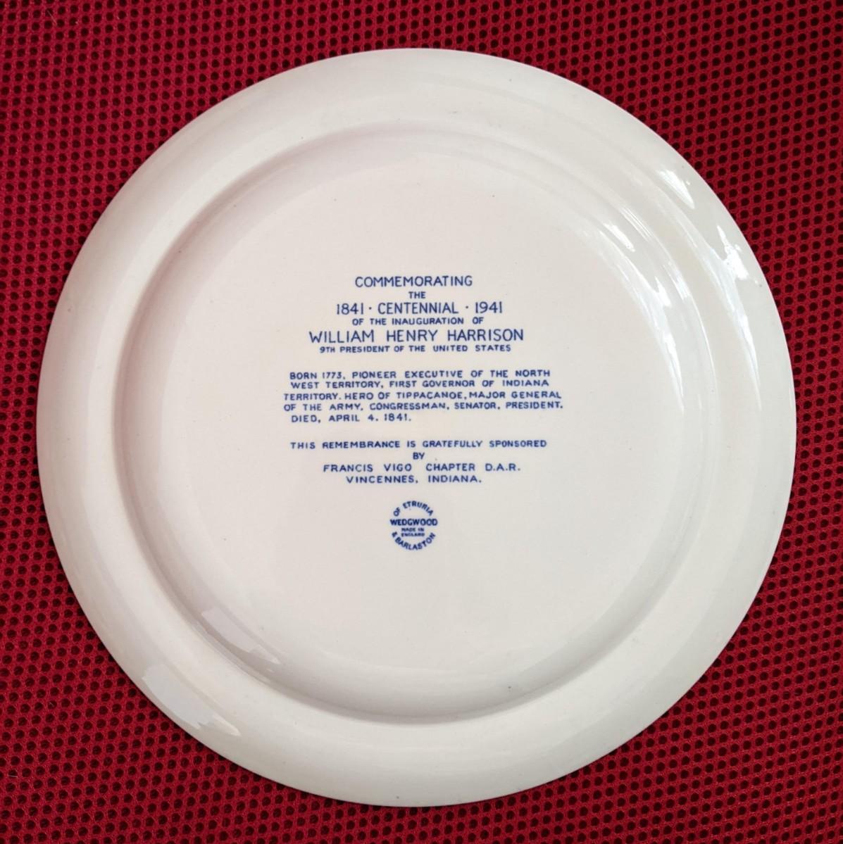 William Henry Harrison Commemorative Wedgwood Plate 1841-1941