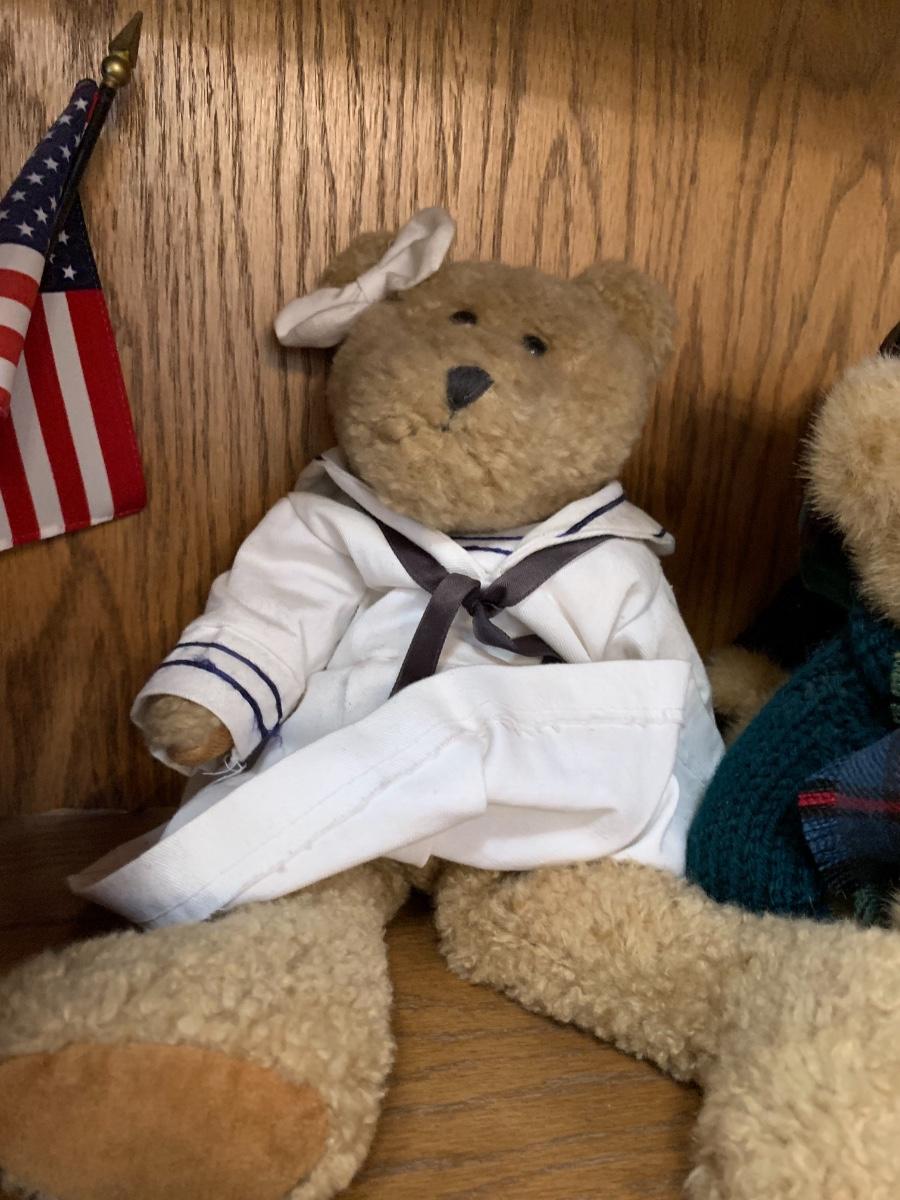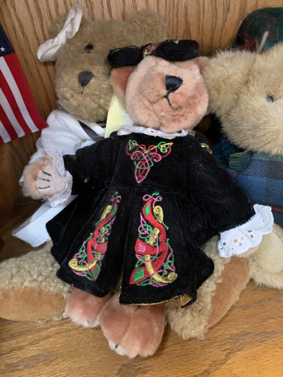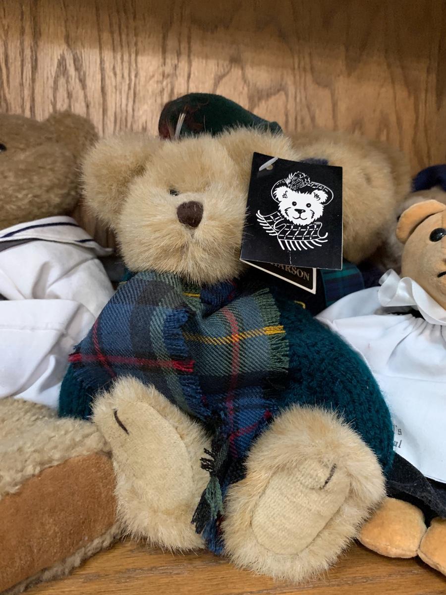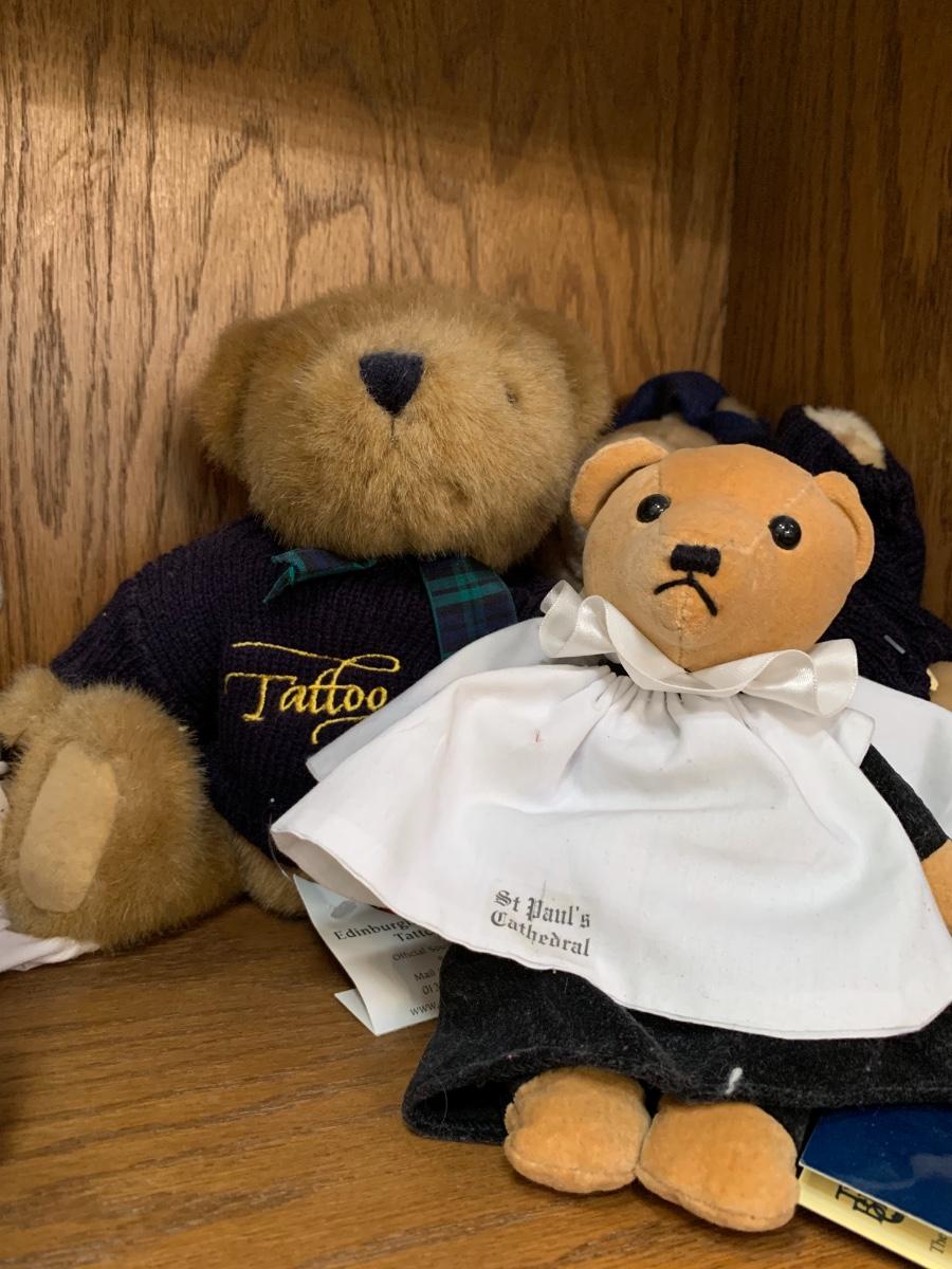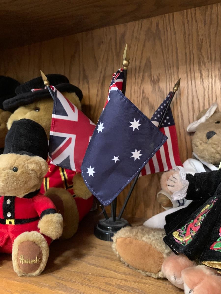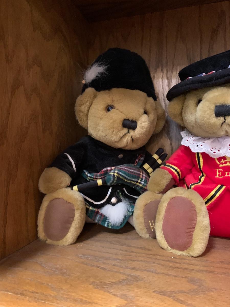 Harrods Bear collection (6 in total), and 6 misc additional bears and one small flag stand