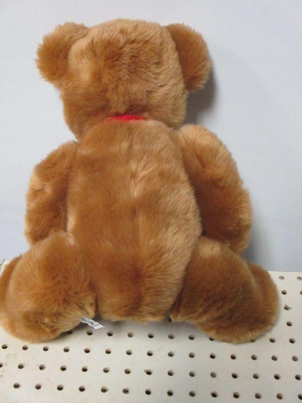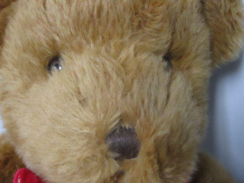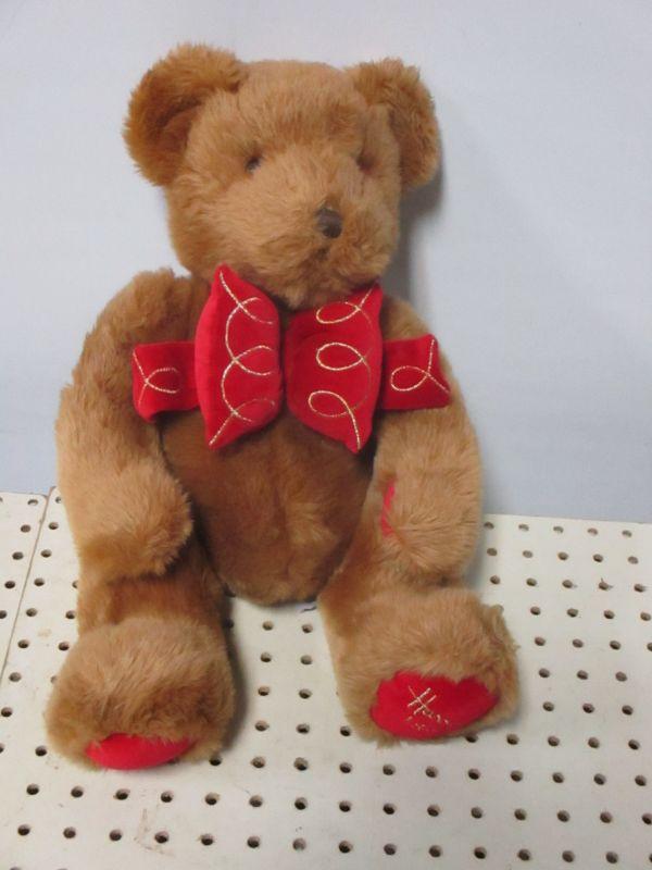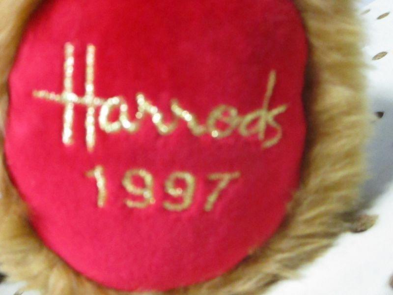 HARRODS Vintage 1997 Christmas Brown Bear Plush Dated Foot Stuffed Animal Red. Red velvet ribbon with gold accent.