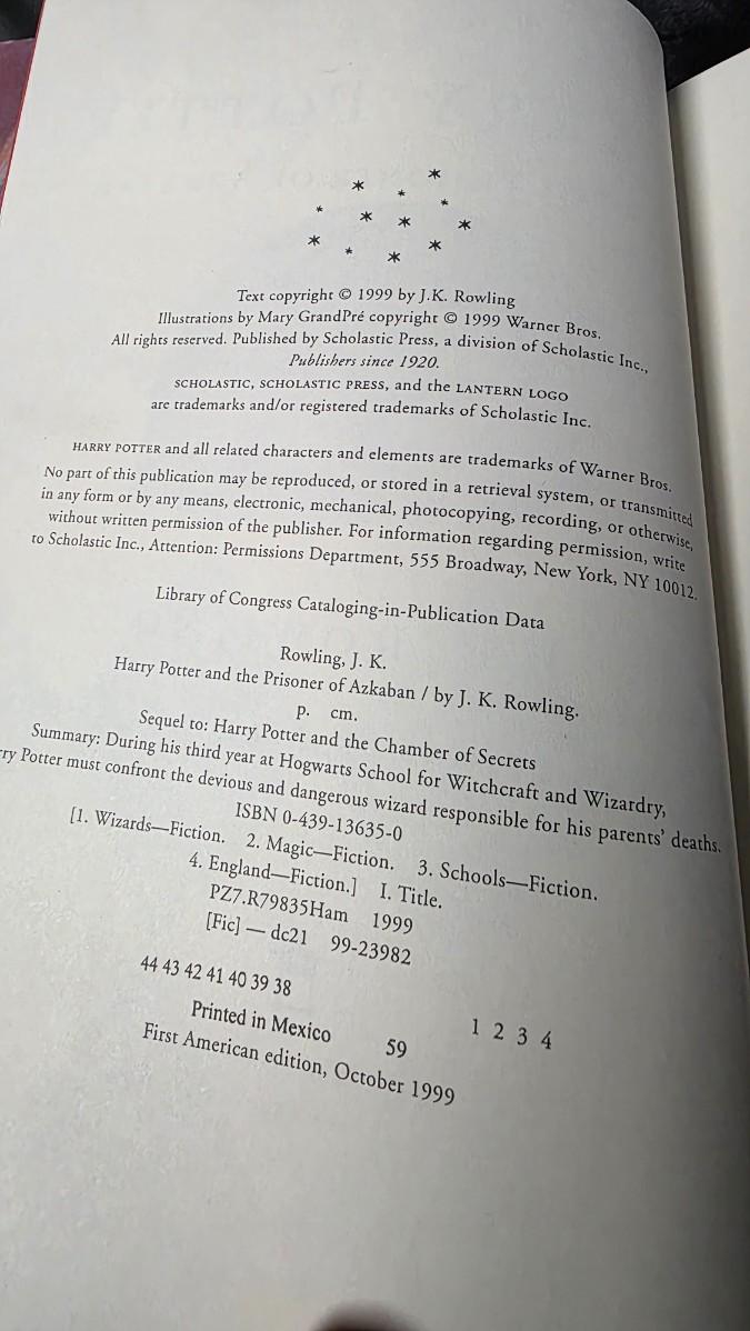 Harry Potter and the Prisoner of Azkaban Hardcover — First American Edition, 38th Printing (1999)