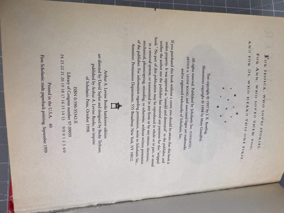 Harry Potter and The Sorcerer's Stone First American Edition.