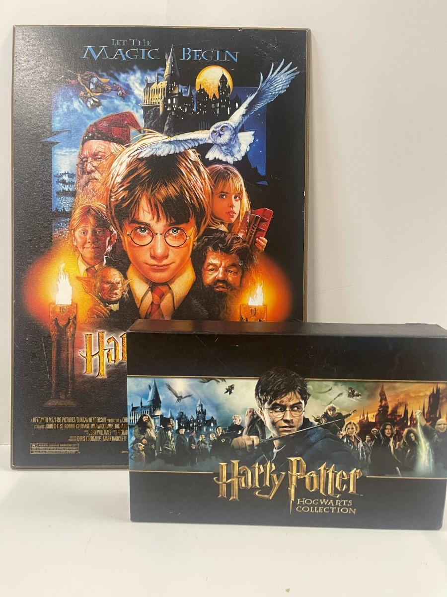 Harry Potter lot incudes Harry Potter poster on board and Harry Potter Hogwarts Collection DVD box set, very good condition.