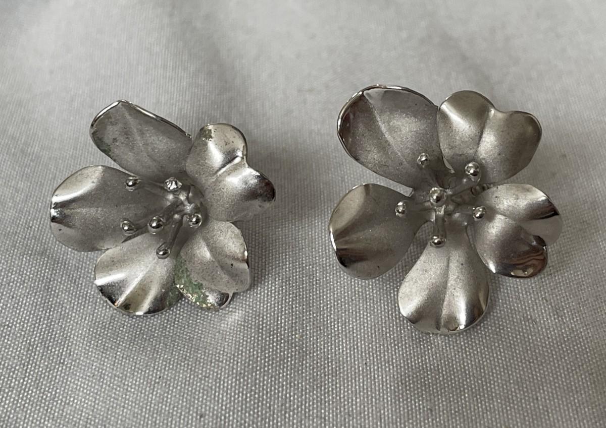 These screwback earrings were made between 1947-1993 when the company was in business. They flower is about 1 inch wide and they are in excellent condition.