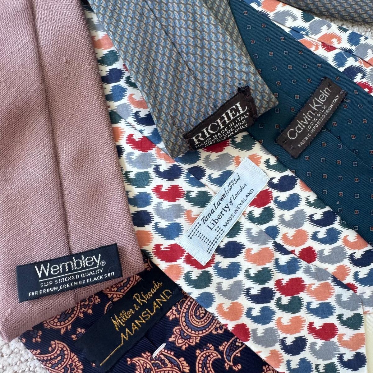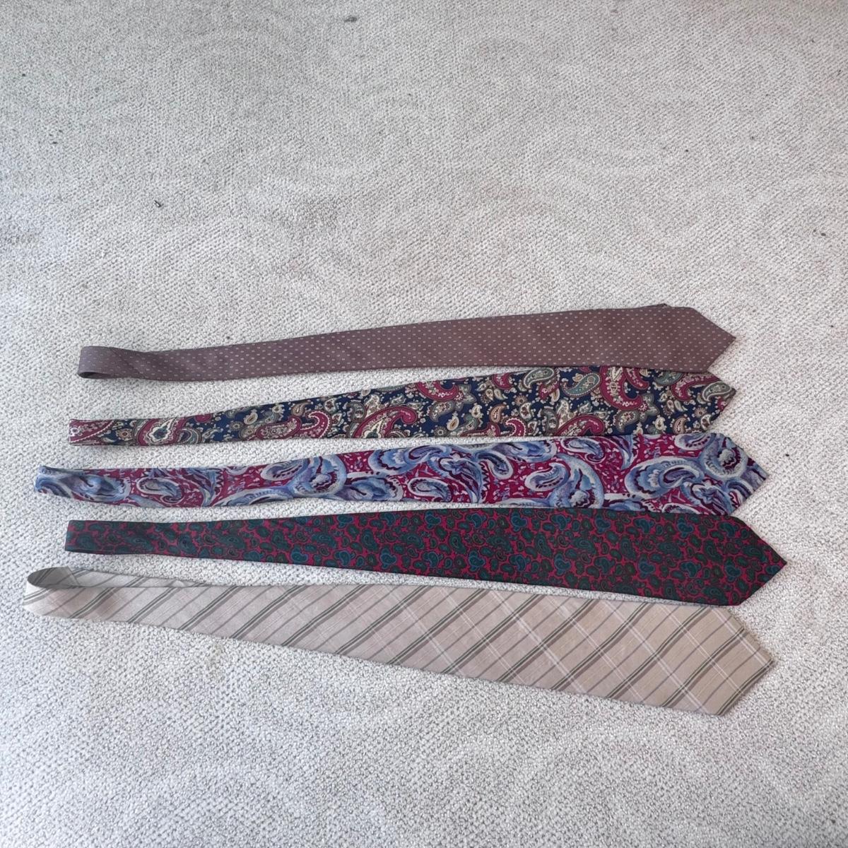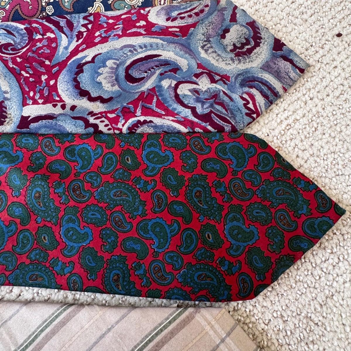 This lot includes four men’s suit jackets from Hart Schaffner & Marx, Jefferson, Chereskin and Tailor’s Row by Deansmith. All suit jackets have no size listed, but they appear to all be size XL and measure an average of 19” across back shoulders and center back of 31”. It also includes over twenty men’s ties. You’ll find ties that are 100% silk or 100% wool all from the following brands: King’s Road Shop, Izod, Christian Dior, Liberty of London, Geffrey Beene, Prestige, and more. See photos for other brands. Shipping available.