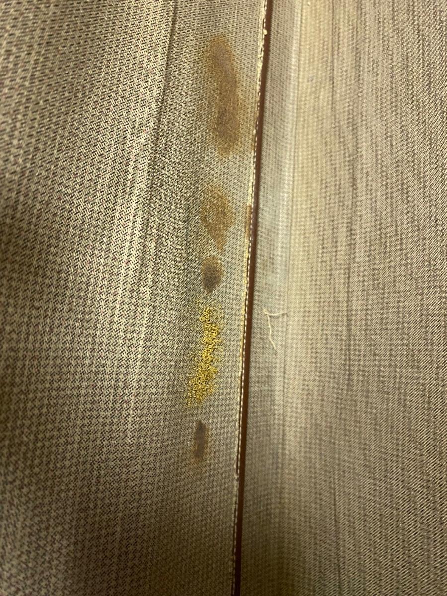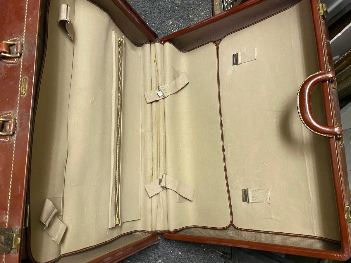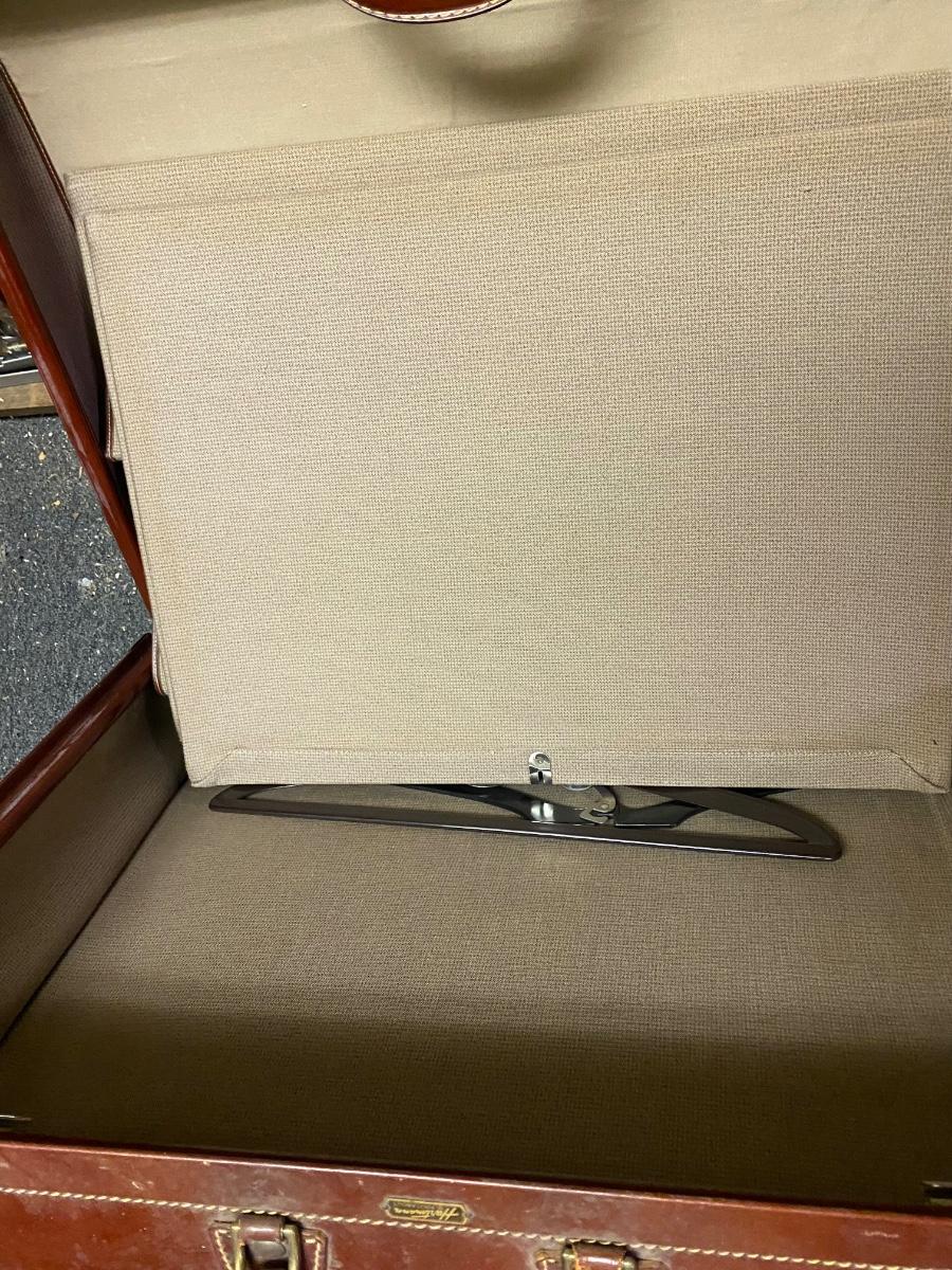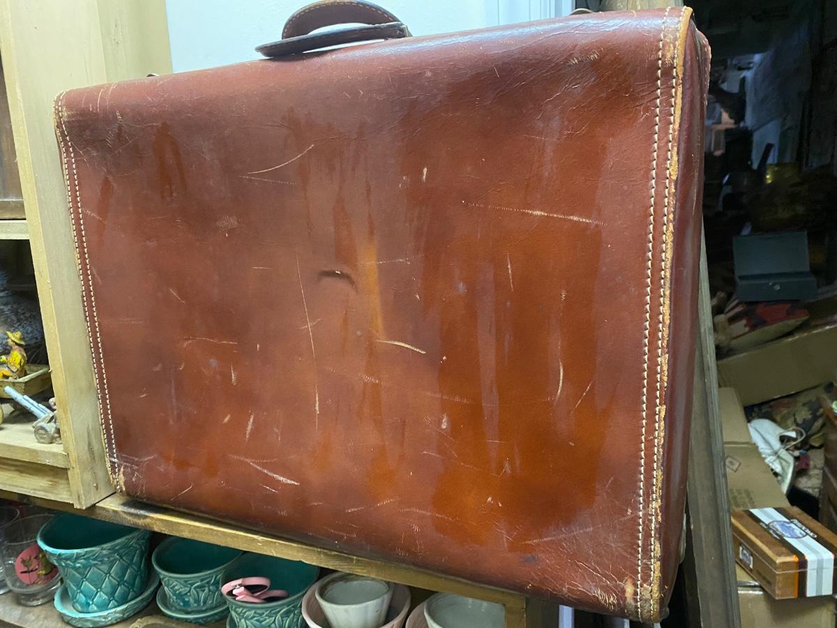 Inside is in great condition except for stain that could possibly be wiped out.The outside is leather but it does have some cosmetic flaws from wear and age as shown in photos. Hartman tag. Please notice the scuffs and wear around the corners and bottom.