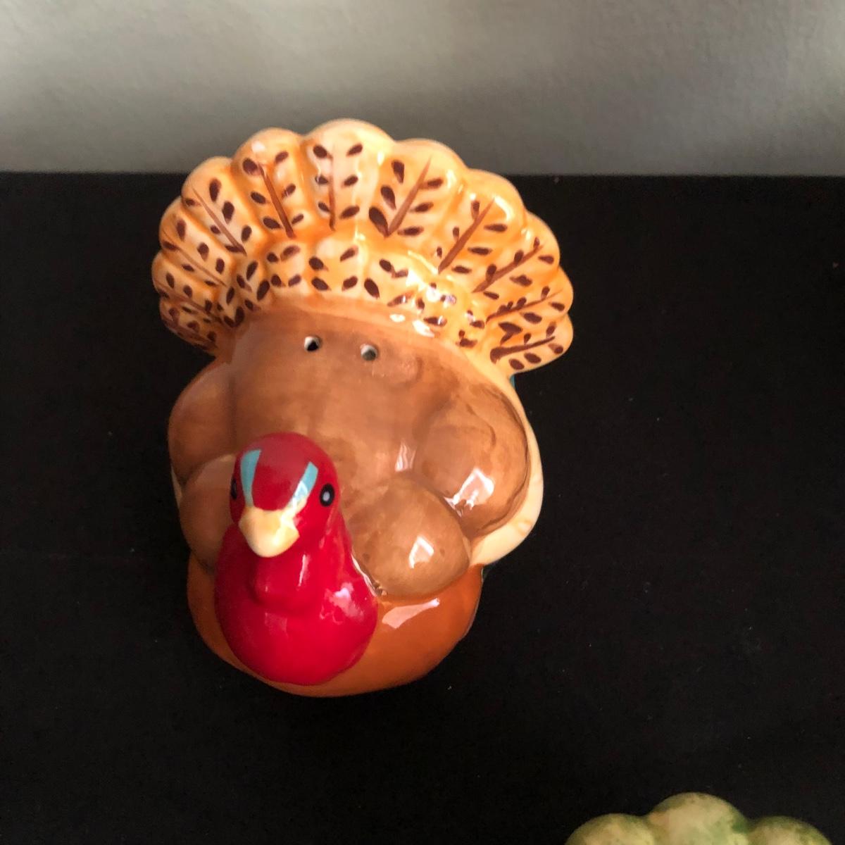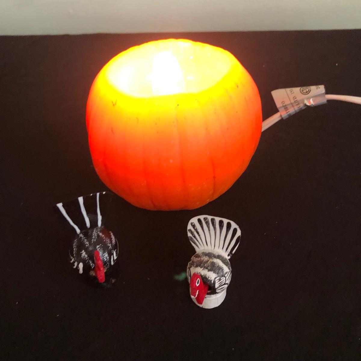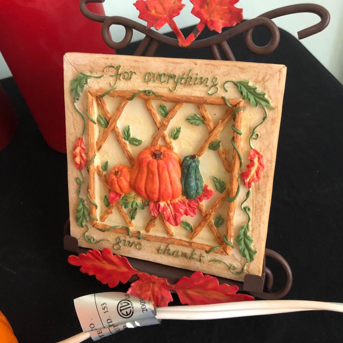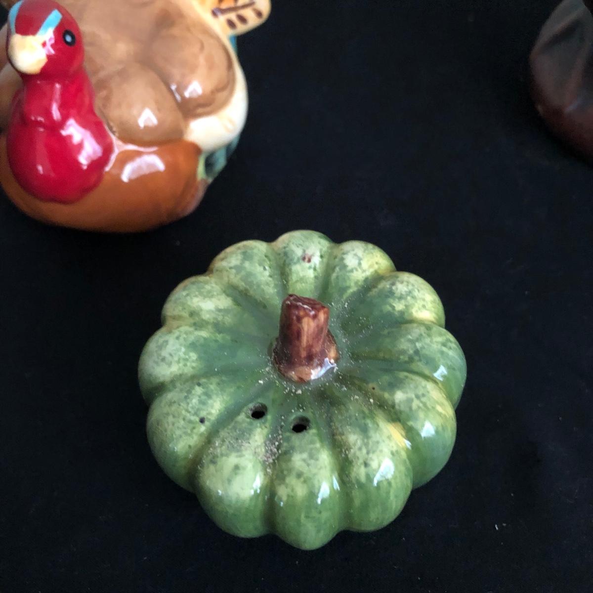 This lot is all about the fall season! It has 2 children’s Halloween costumes and a Halloween Afro wig. It has items to decorate your table: candles, salt & pepper shakers and Jack-o-lantern jars. It has Halloween decorations: pumpkins that light up, starlight lamp and a gourd ghost and more! The Turkey platter measures 18” x 13.5”. The pumpkin is made of a light weight material such as styrofoam. There are 2 lantern jars-both still in their boxes. There are 3 salt& pepper shakers-2 turkeys and one green pumpkin. Shipping Available.