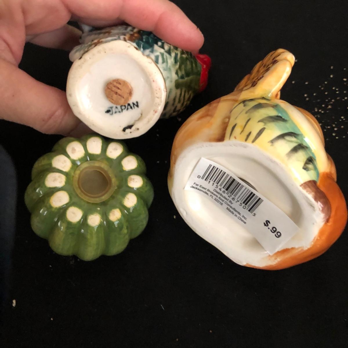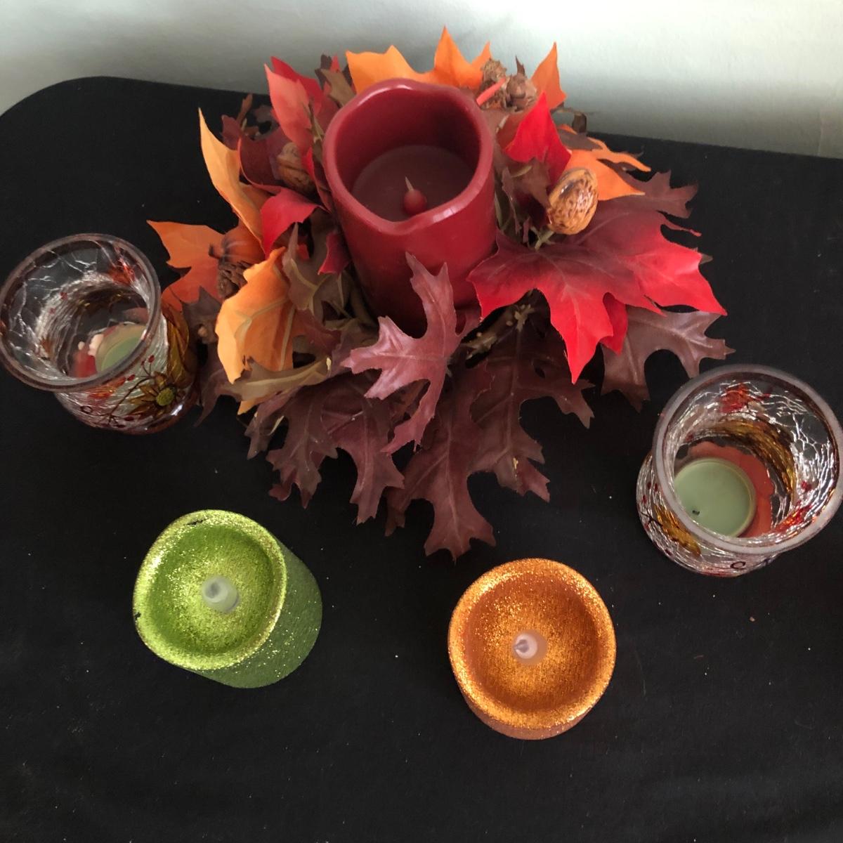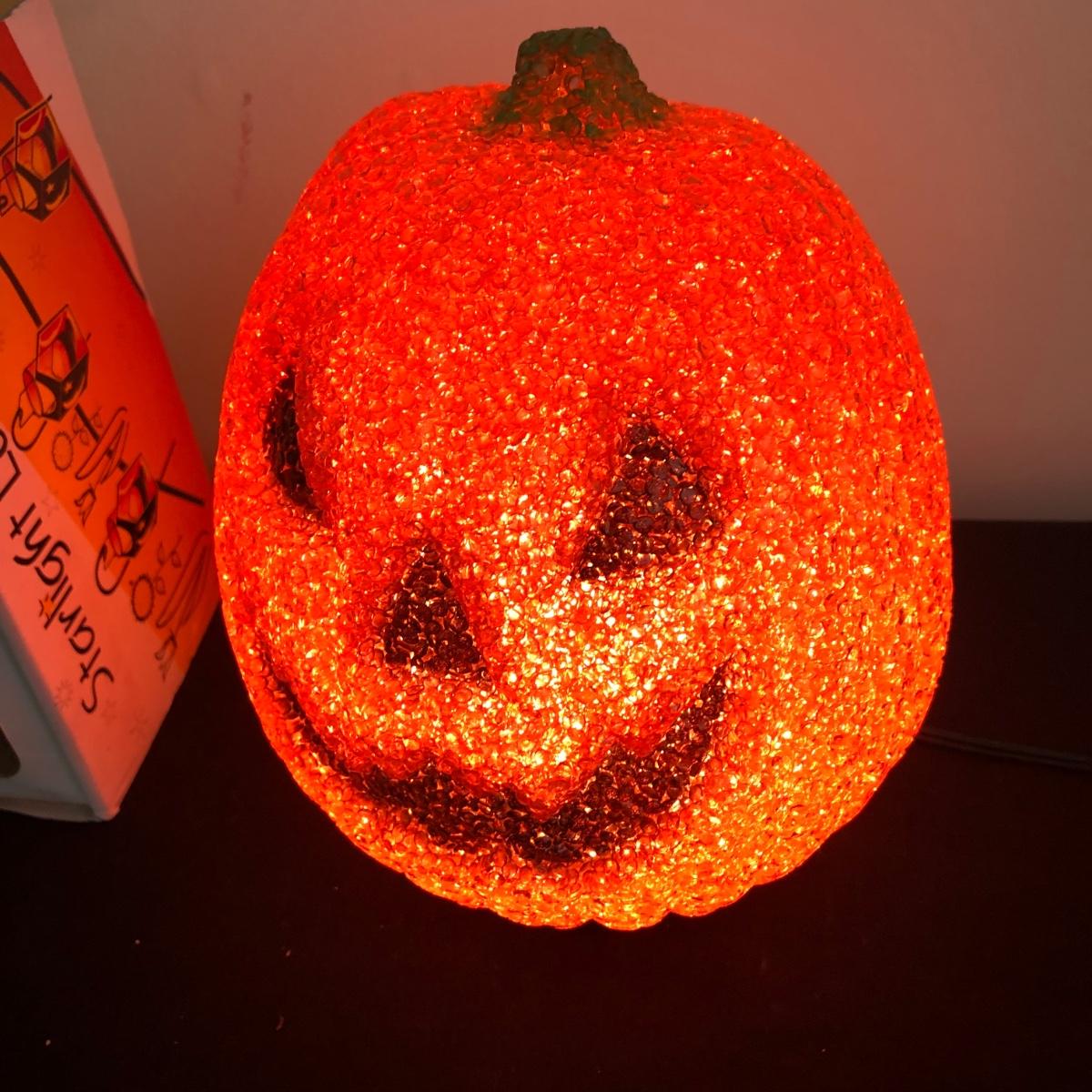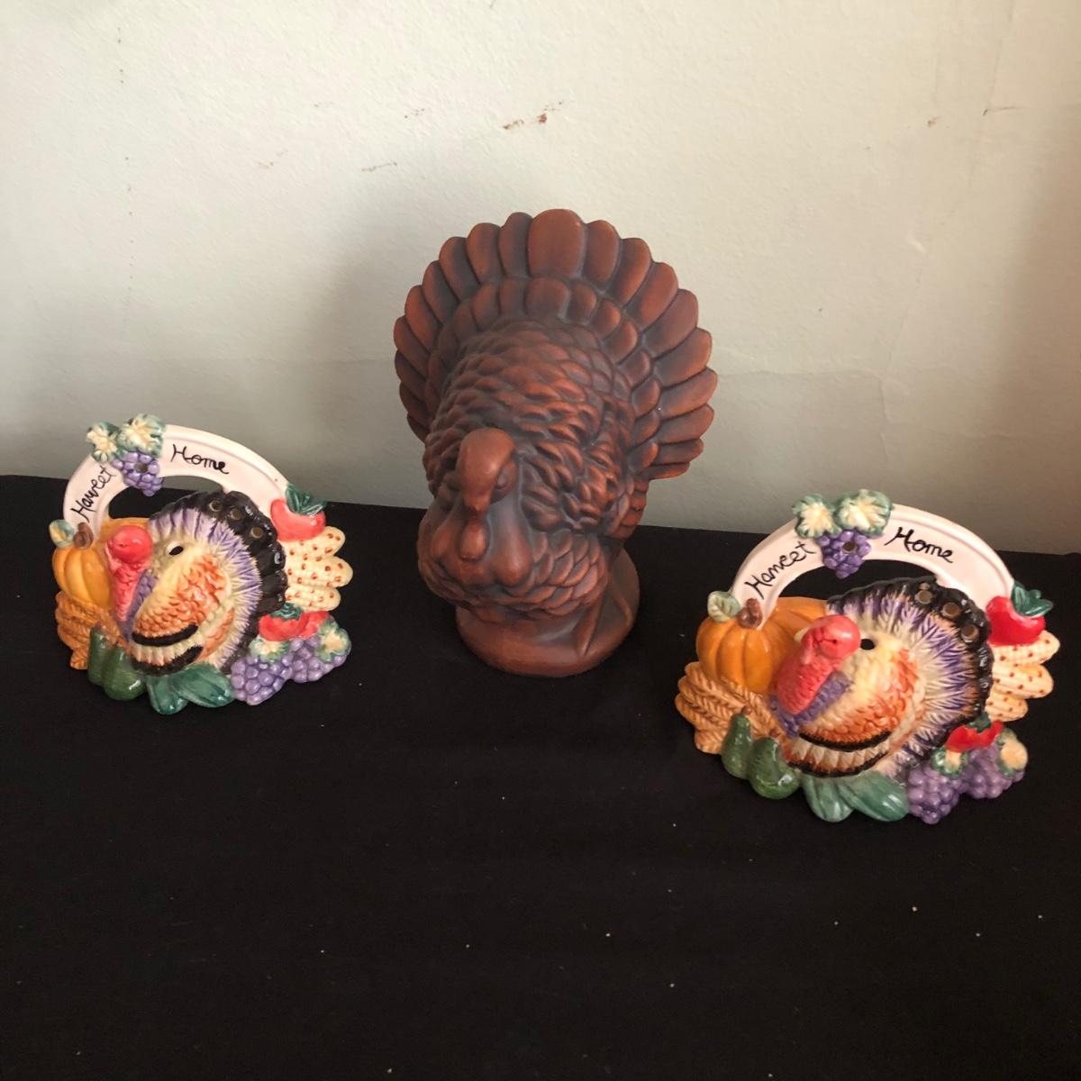 This lot is all about the fall season! It has 2 children’s Halloween costumes and a Halloween Afro wig. It has items to decorate your table: candles, salt & pepper shakers and Jack-o-lantern jars. It has Halloween decorations: pumpkins that light up, starlight lamp and a gourd ghost and more! The Turkey platter measures 18” x 13.5”. The pumpkin is made of a light weight material such as styrofoam. There are 2 lantern jars-both still in their boxes. There are 3 salt& pepper shakers-2 turkeys and one green pumpkin. Shipping Available.