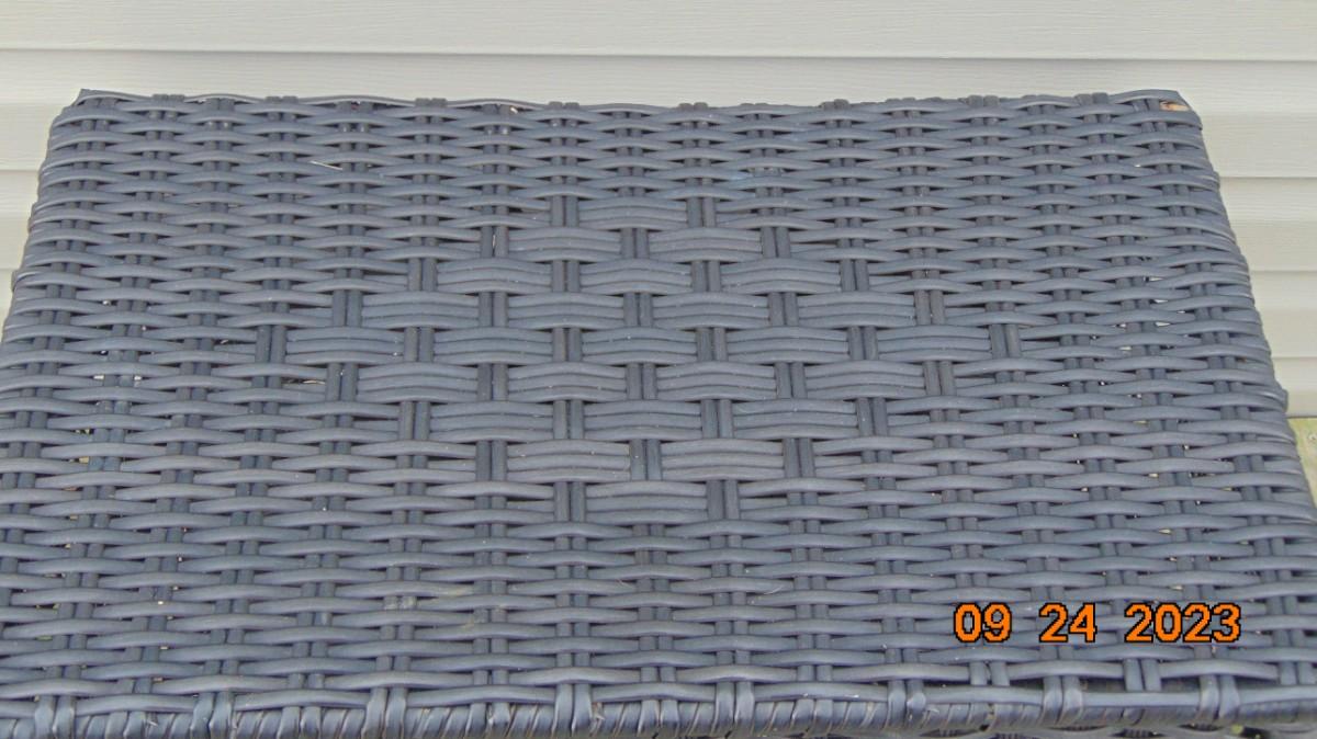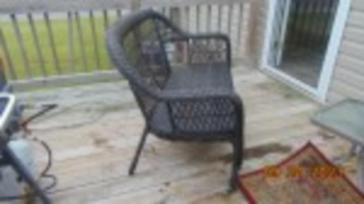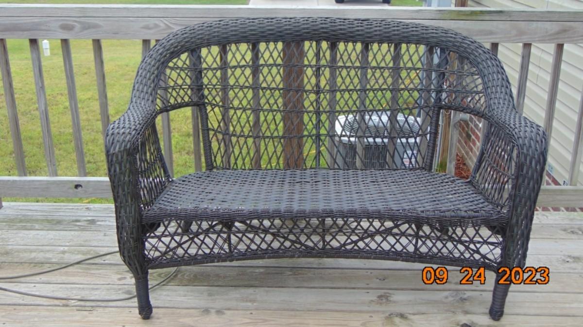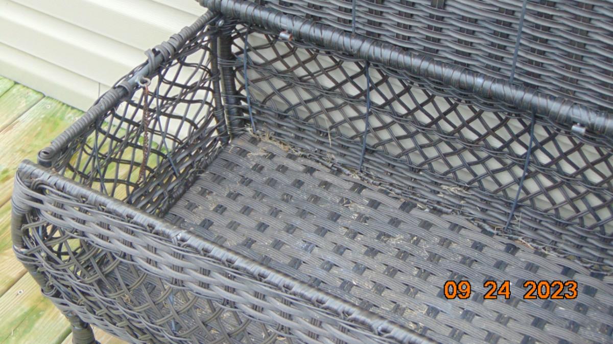 All-weather wicker with a curved backrest and arms in a mixture of closed and open weave stylings. Weather-resistant