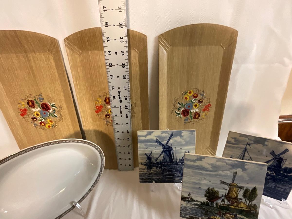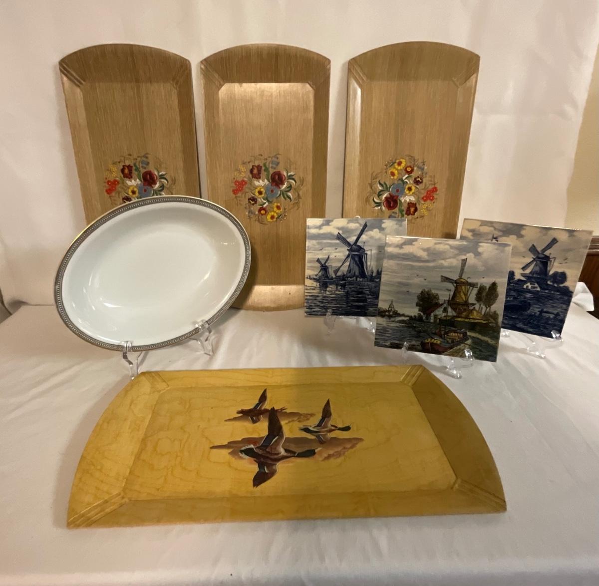 Hasko Wood Trays, Heinrich and Co Bavaria porcelain bowl, Delft’s Blau Windmill Decor