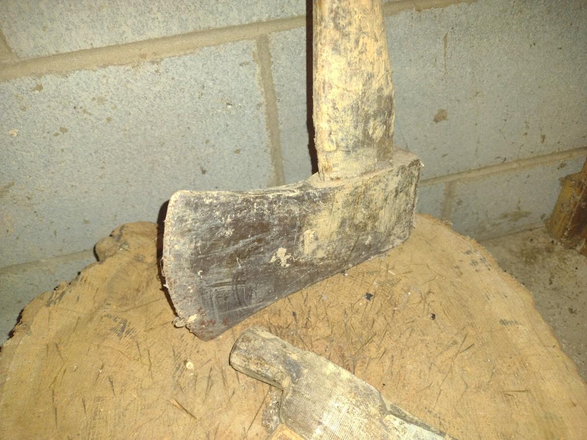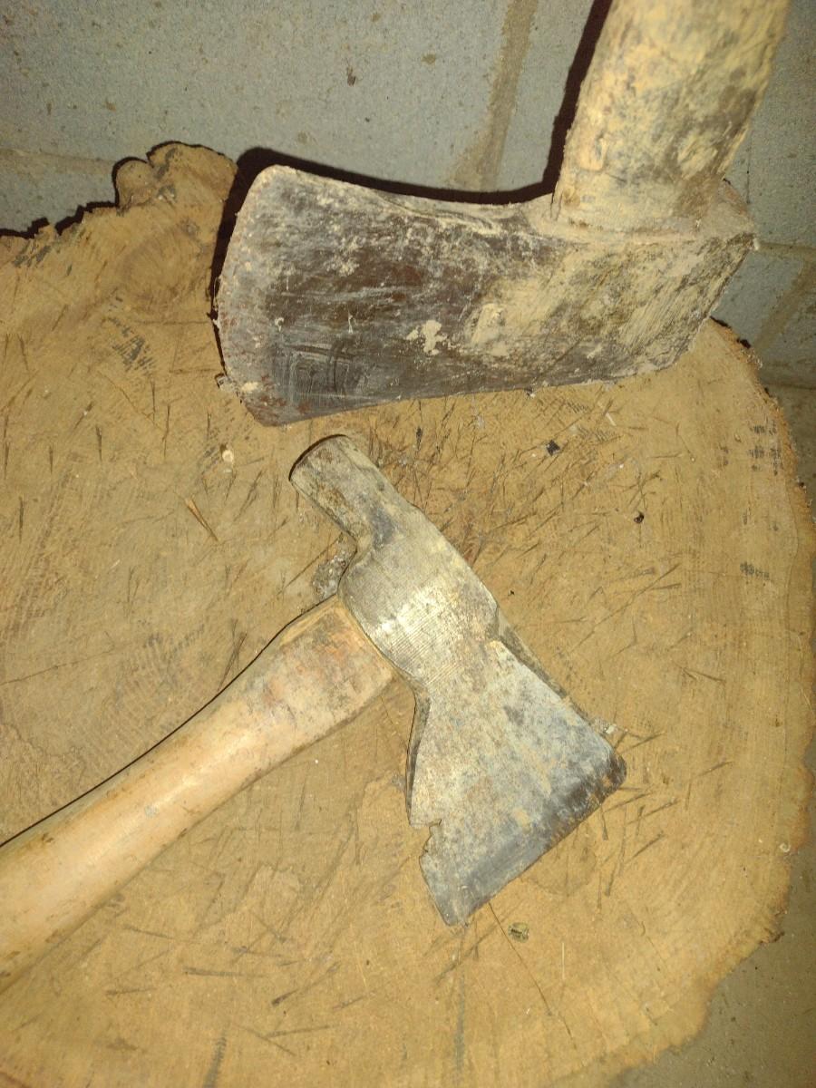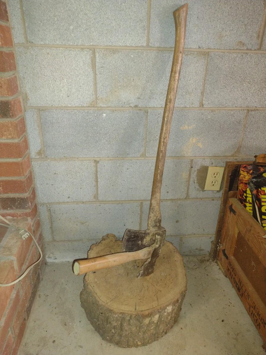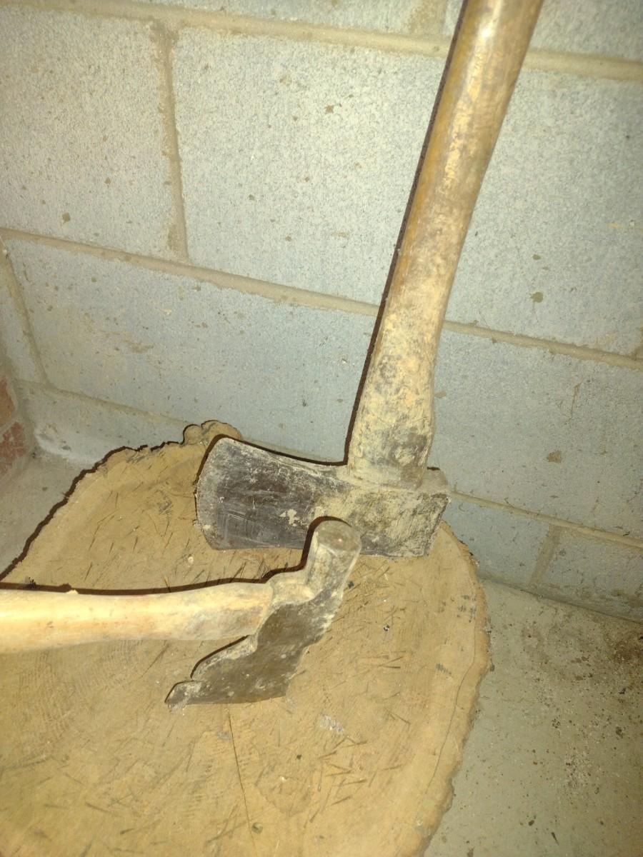 Hatchet and Wood Ax with Chopping Block