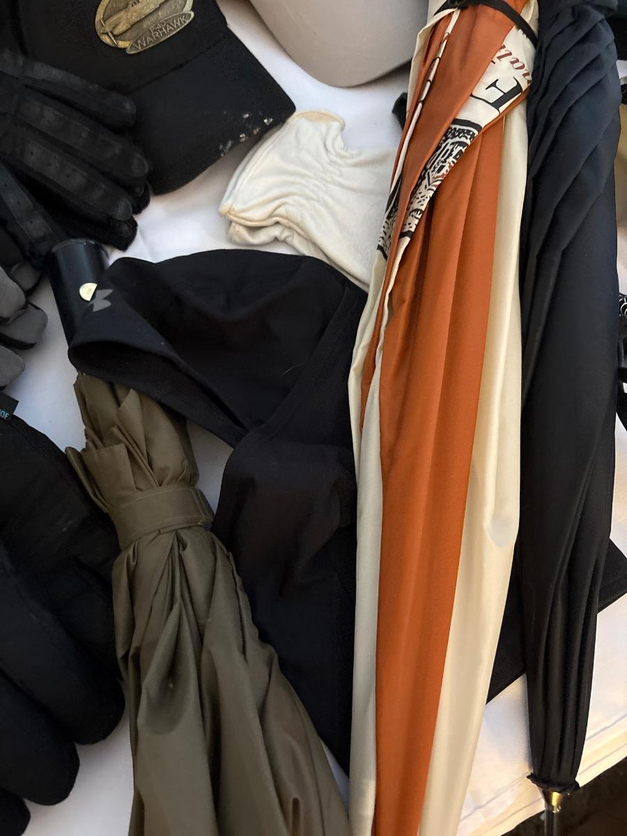 Hats, gloves, umbrellas, etc