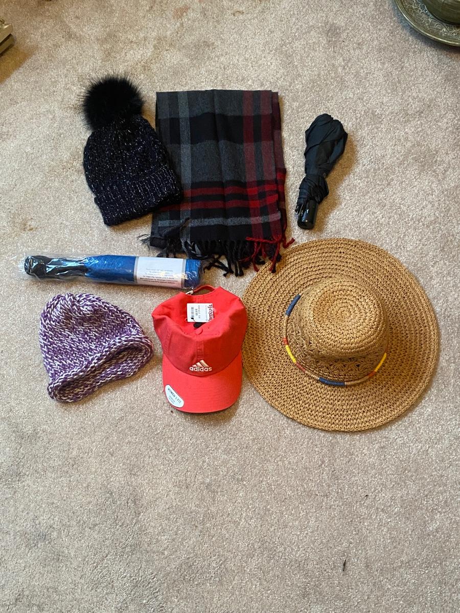 HATS, UMBRELLAS, AND A SCARF