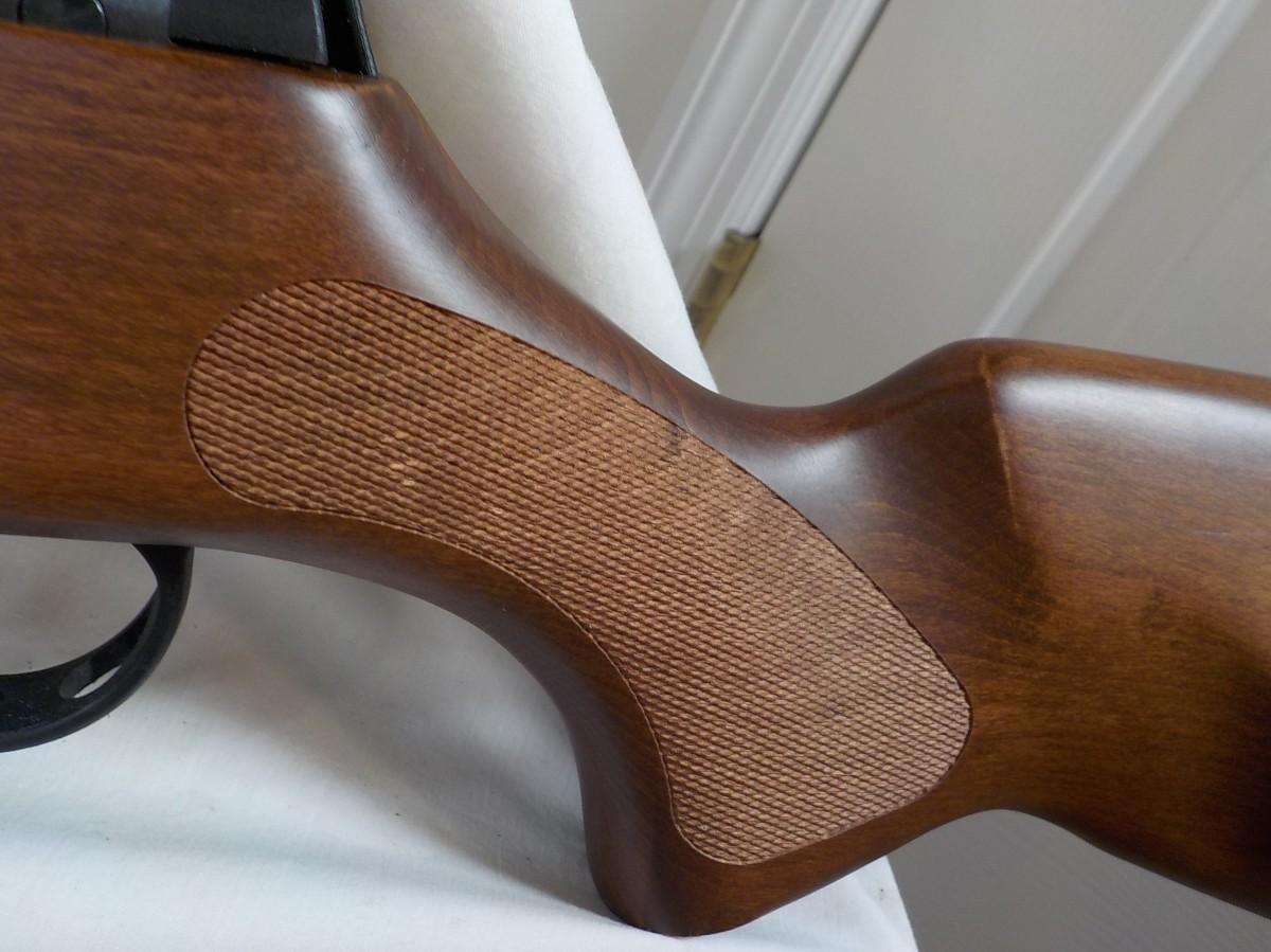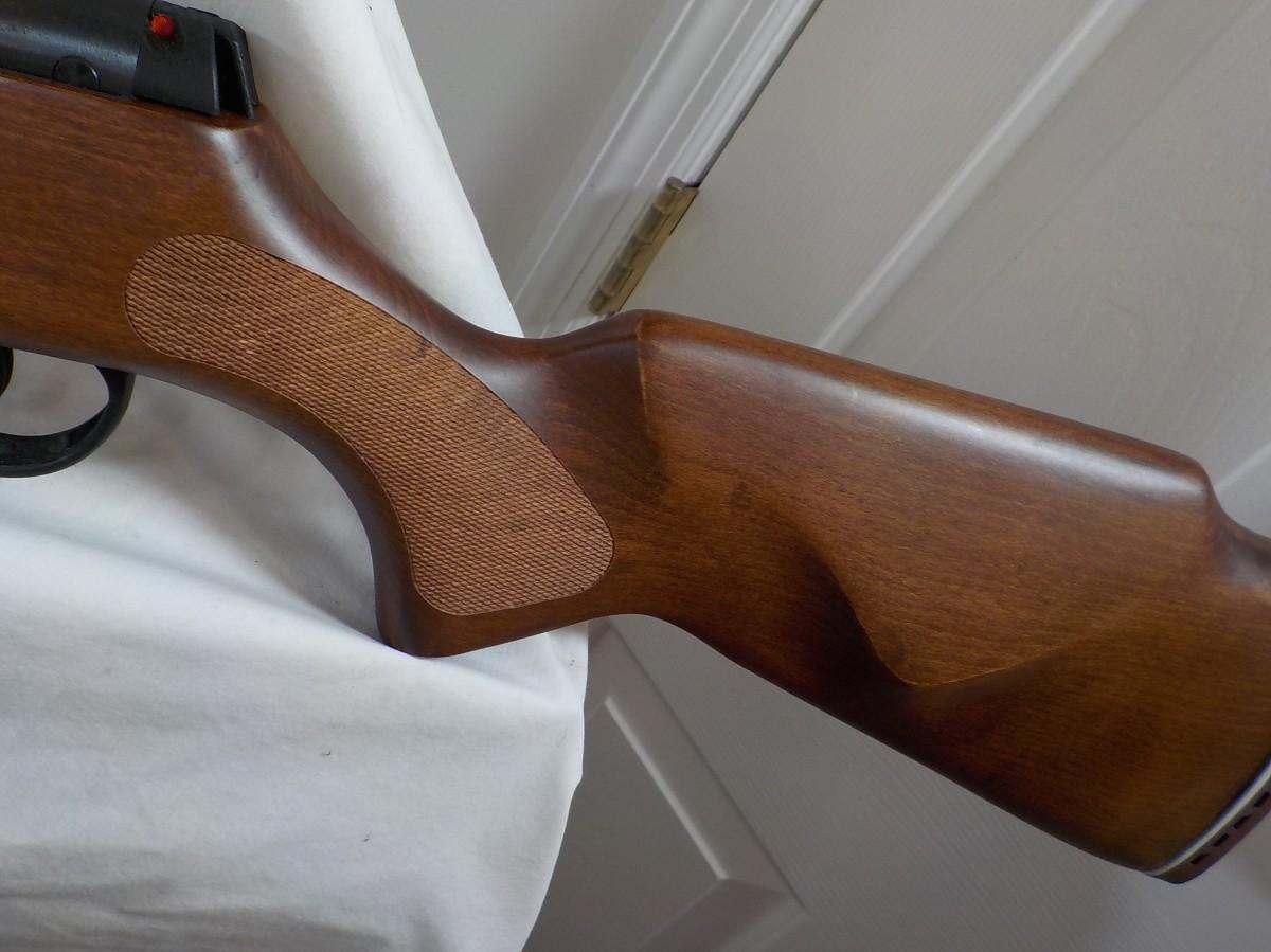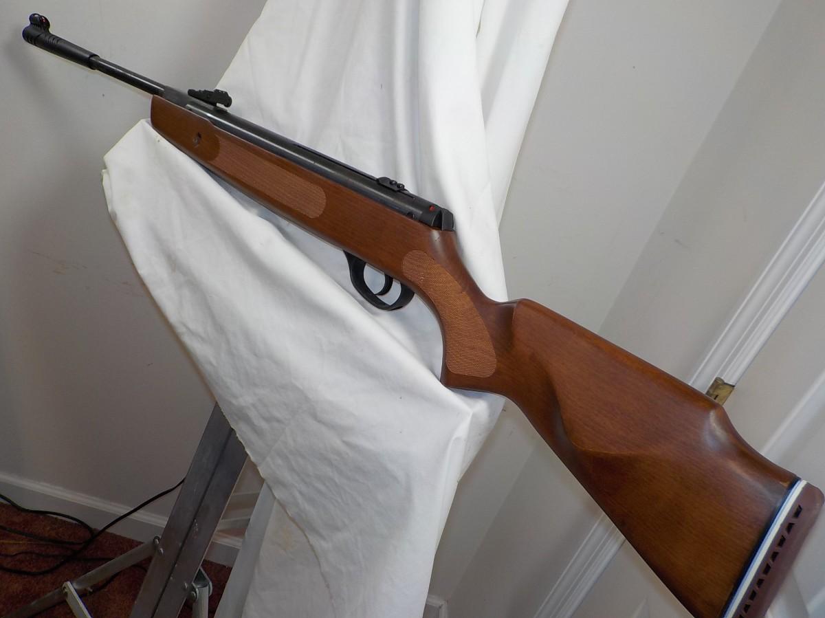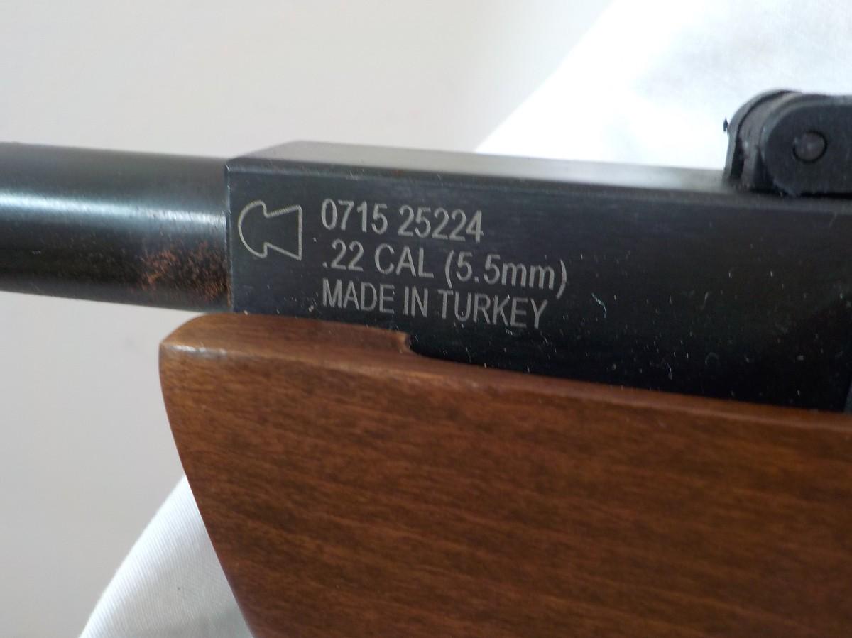 This has a pump air system no co2, Solid walnut wood made in Turkey. Fires smooth with sites that luminate. Very accurate and has been test fired. 2 years old min use.