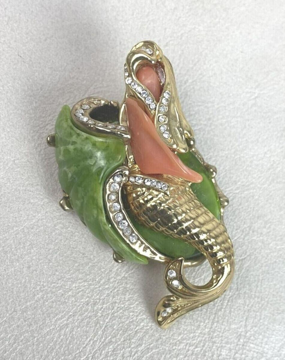 HATTIE CARNEGIE MERMAID BROOCH FAUX CORAL RHINESTONE 1960s
