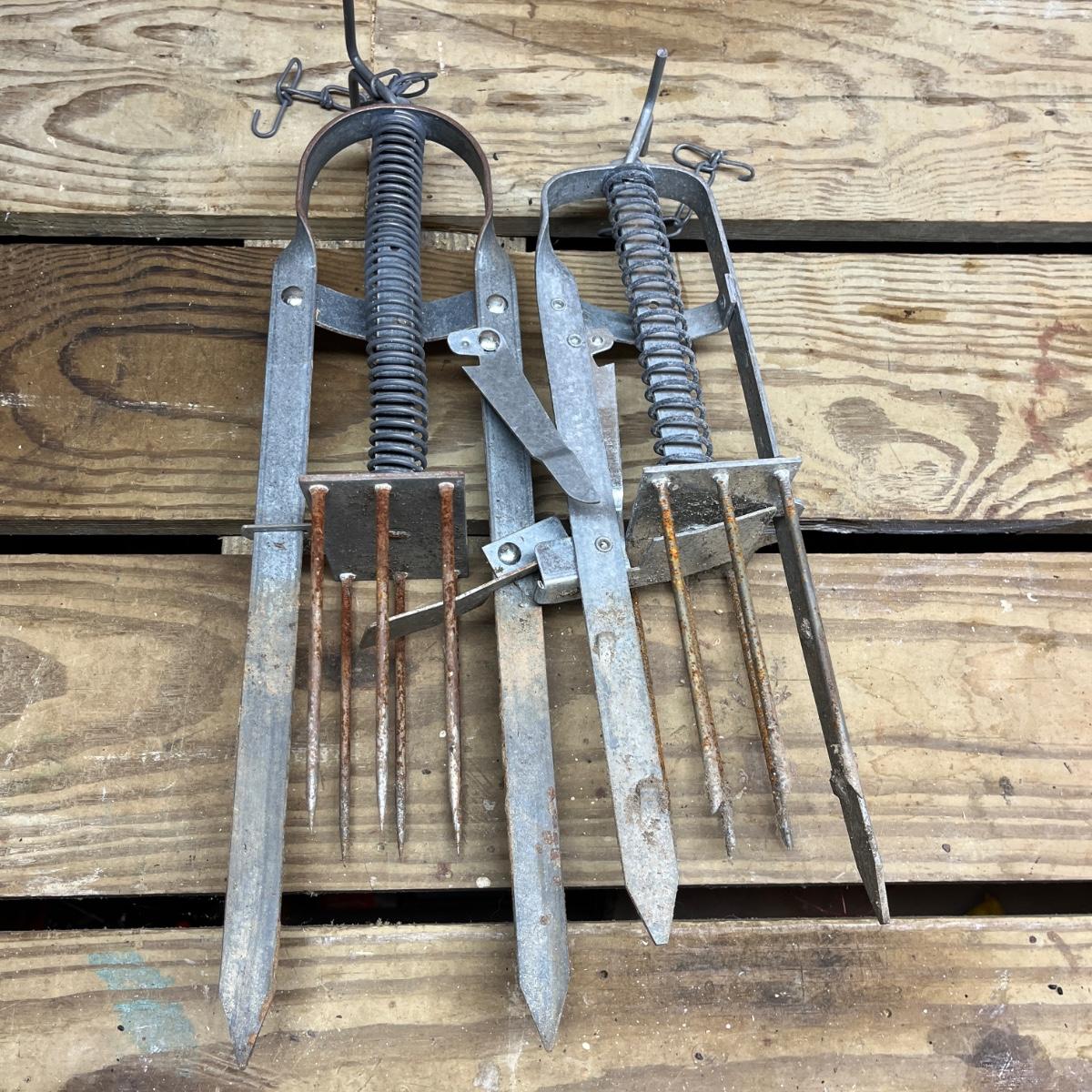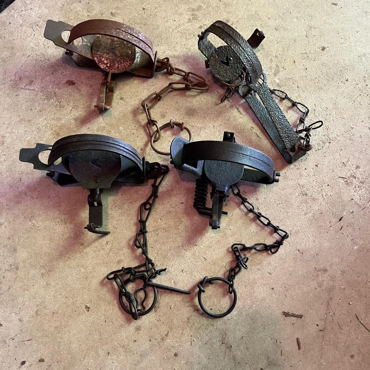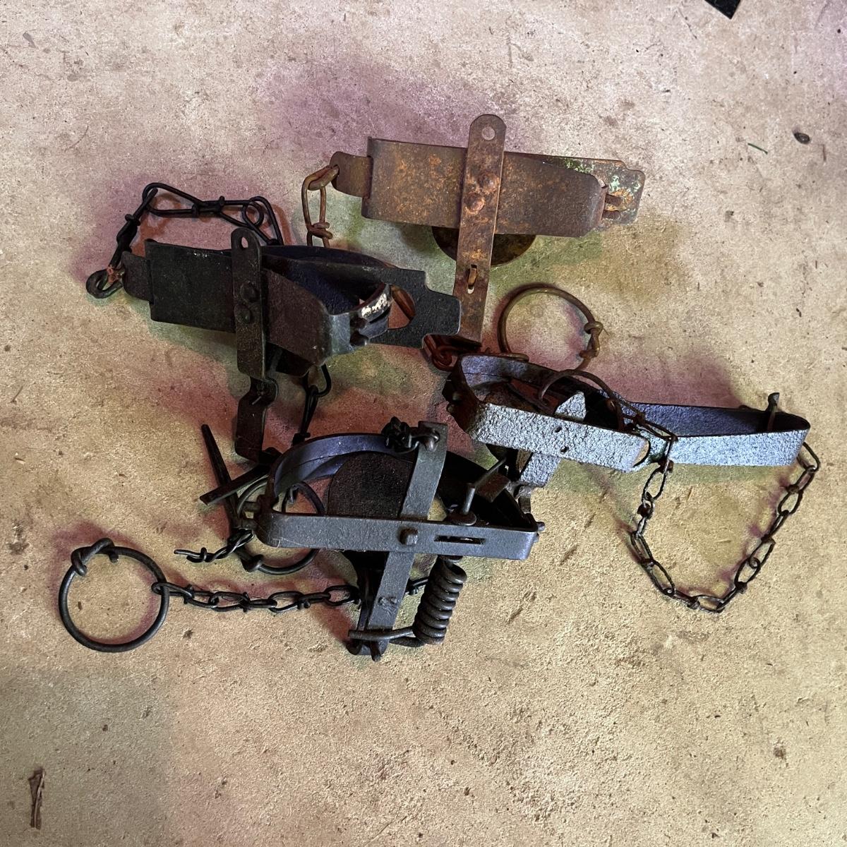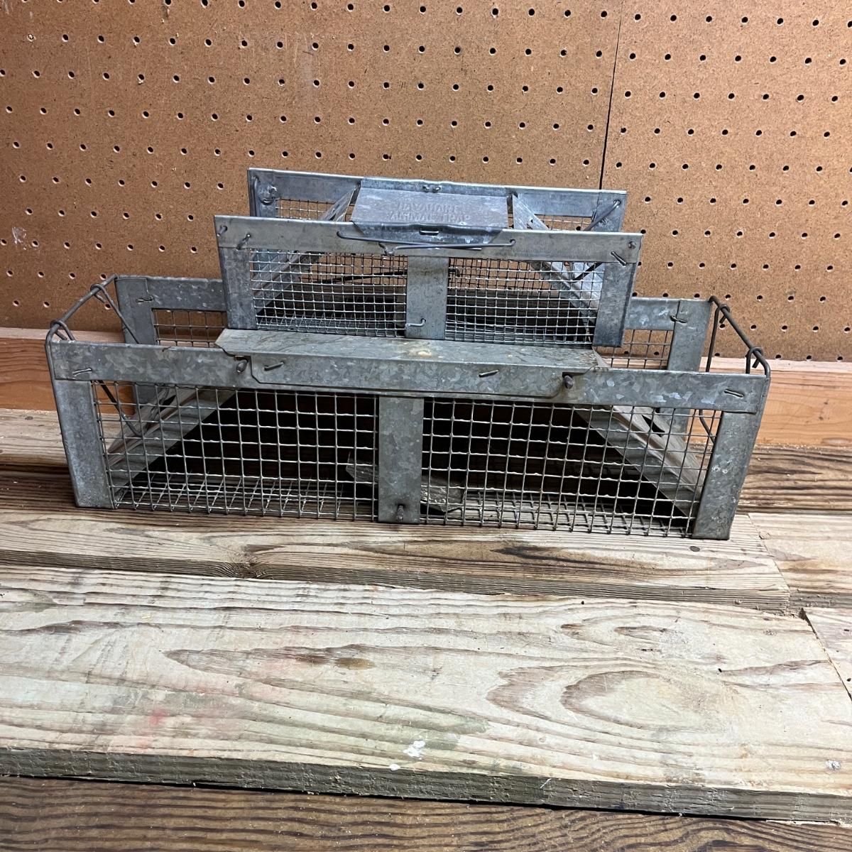 Lot includes two Havahart metal humane animal traps, two metal mole traps and four metal leg hold traps. Largest trap measures 18” x 5” x 5”H. Also includes an 8” x 3.5” x 3.5”H Havahart trap.