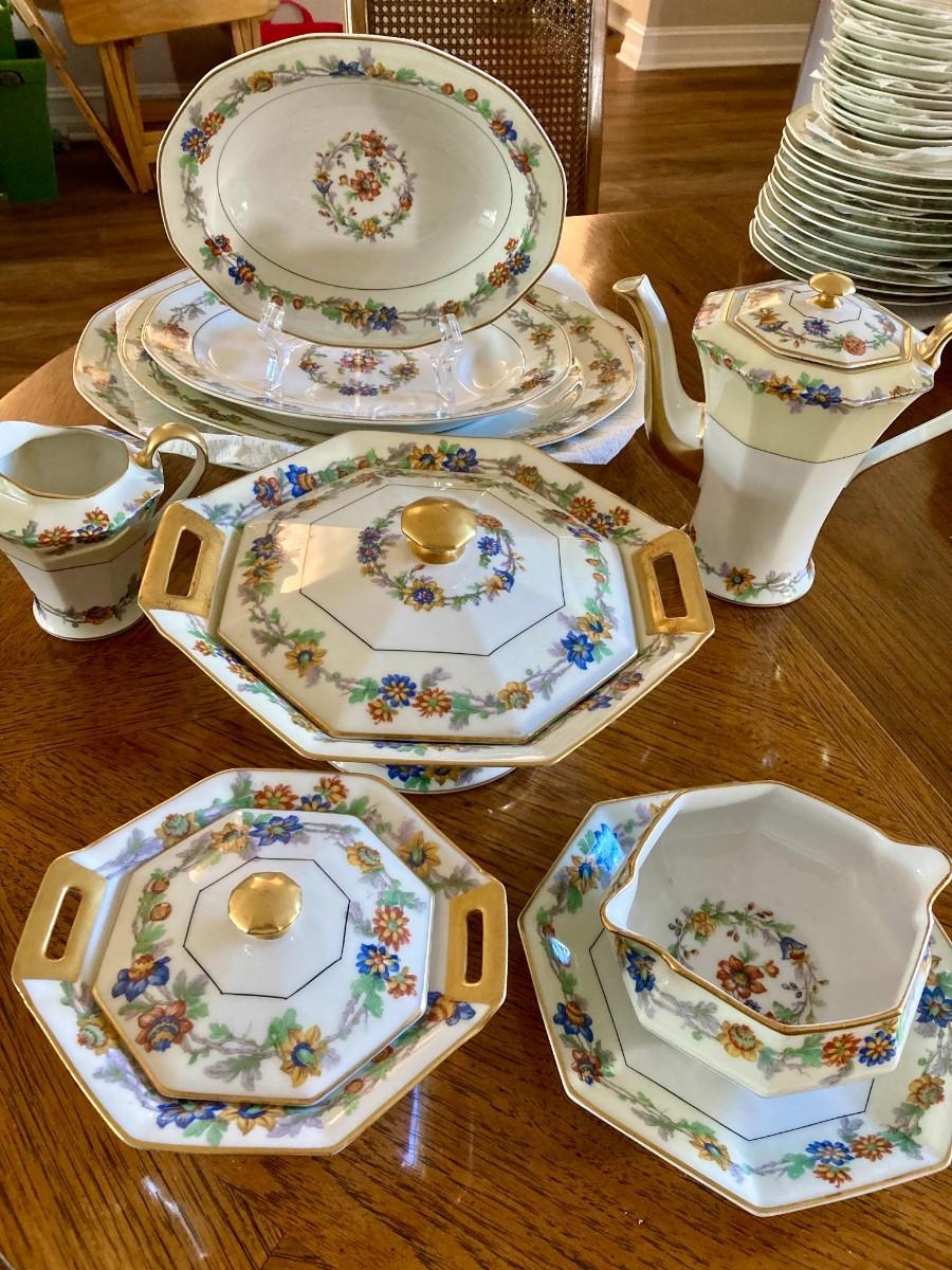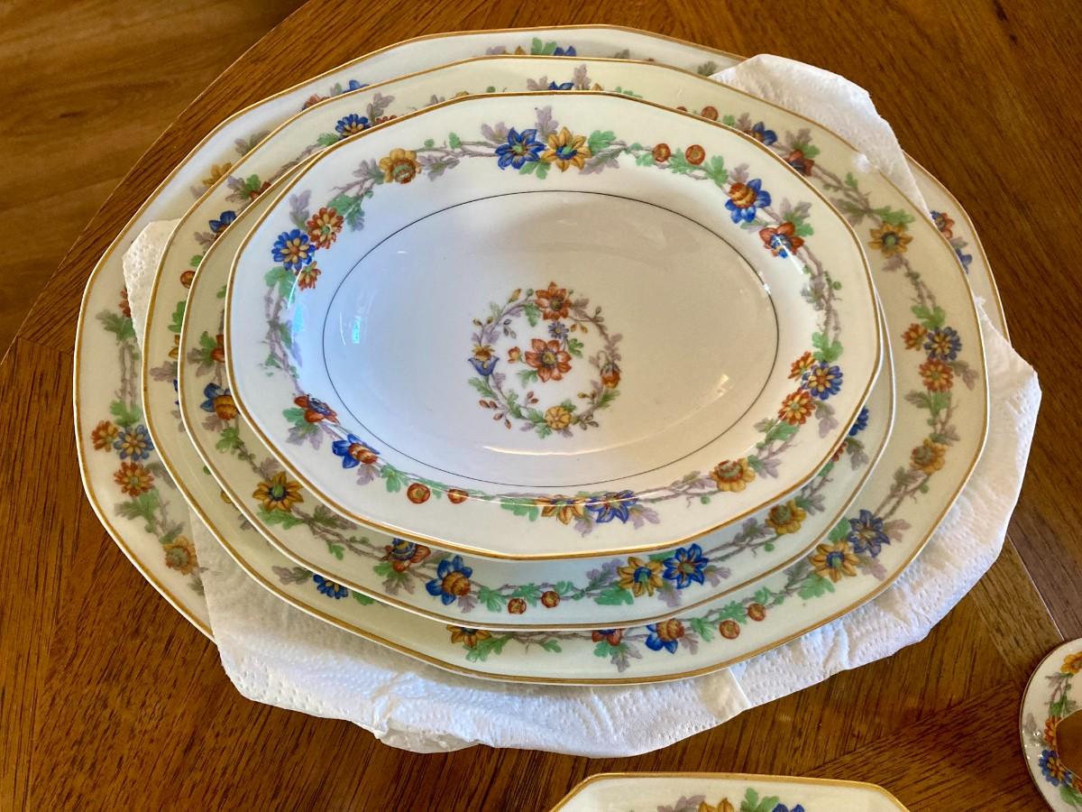 Nine(9) pcs Amboise service set. 3platters, 1 bowl 2 covered, 1 teapot