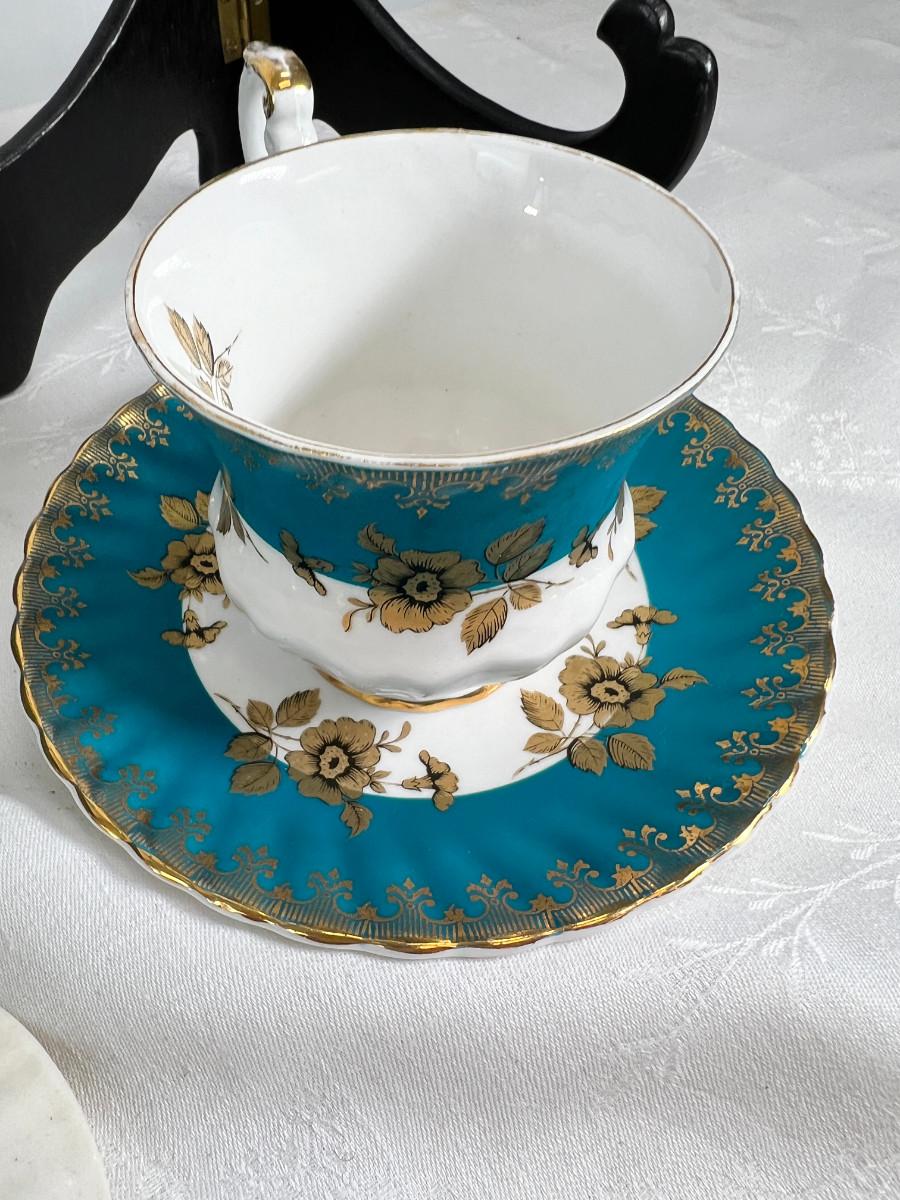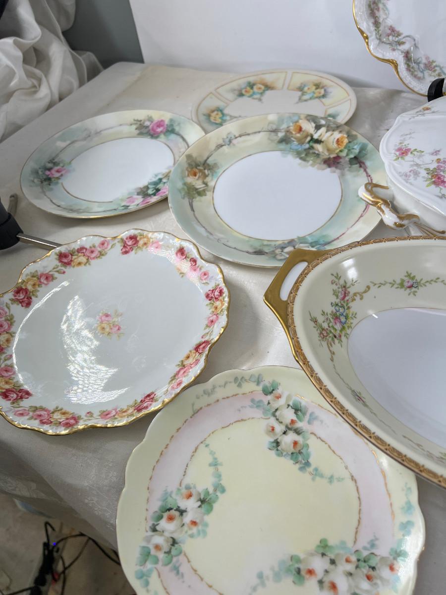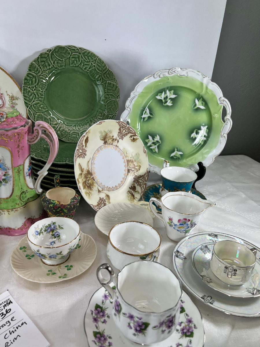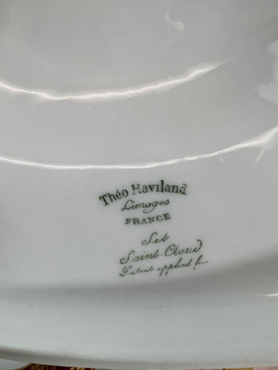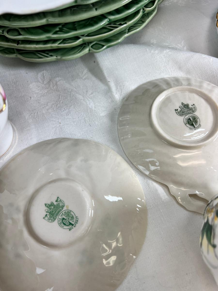 Tea Cups, Chocolate pitcher, Set of Green plates, casserole bowl, gravy boat.